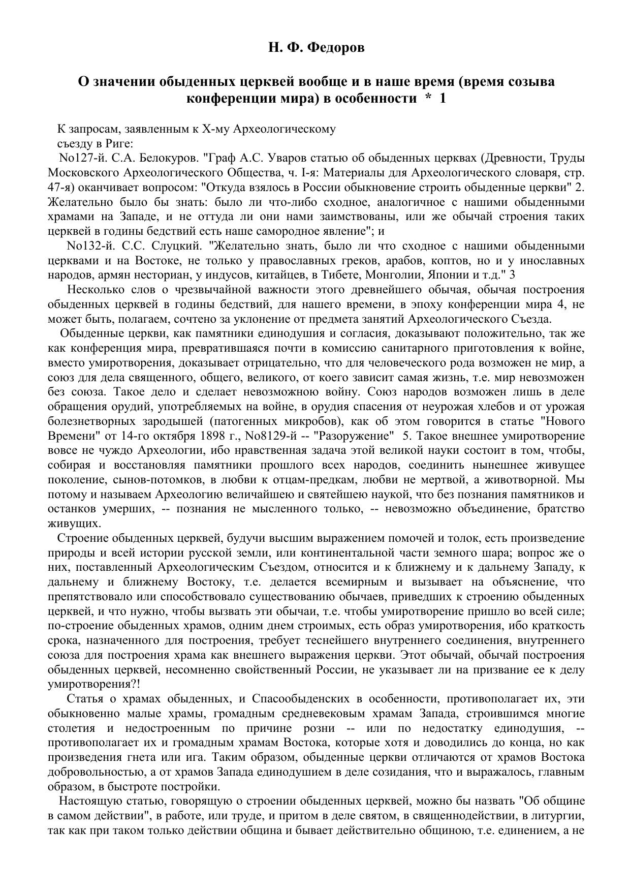 О значении обыденных церквей вообще и в наше время (время созыва конференции мира) в особенности