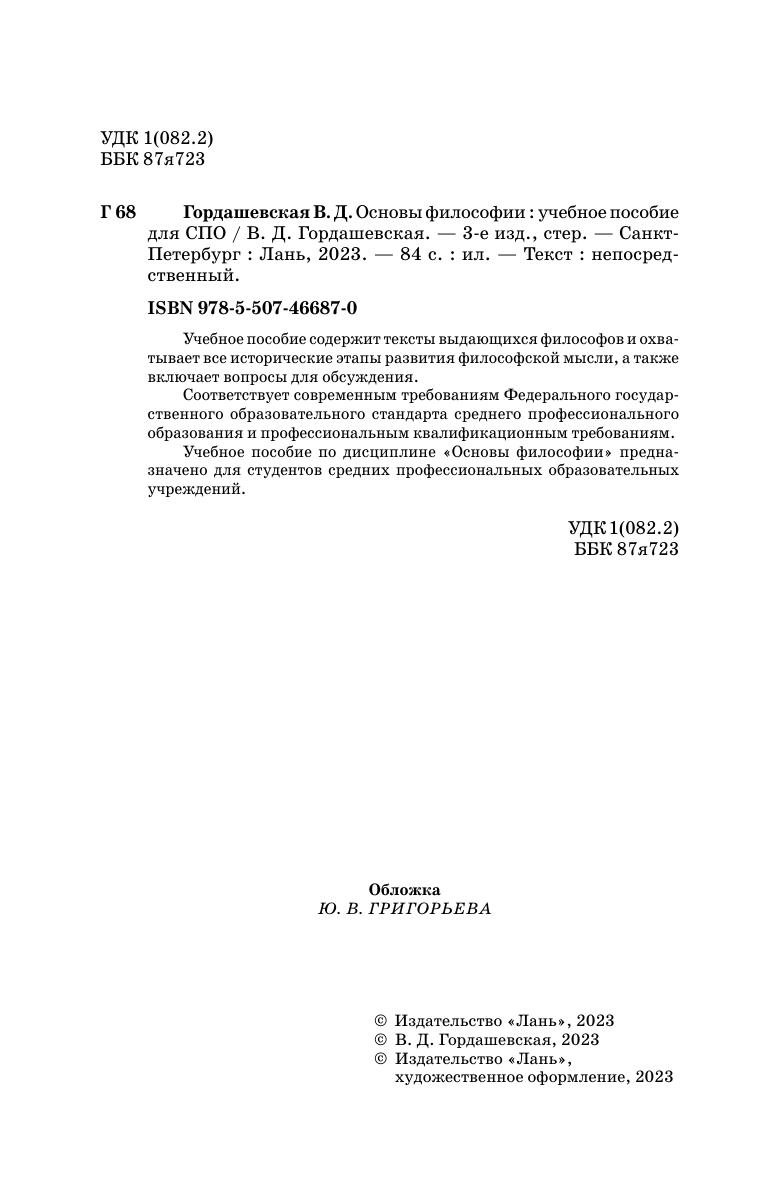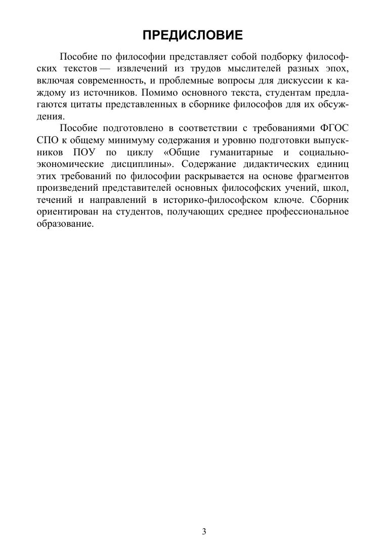Учебное пособие содержит тексты выдающихся философов и охватывает все исторические этапы развития философской мысли, а также включает вопросы для обсуждения. Соответствует современным требованиям Федерального государственного образовательного стандарта среднего профессионального образования и профессиональным квалификационным требованиям. Учебное пособие по дисциплине «Основы философии» предназначено для студентов средних профессиональных образовательных учреждений.
