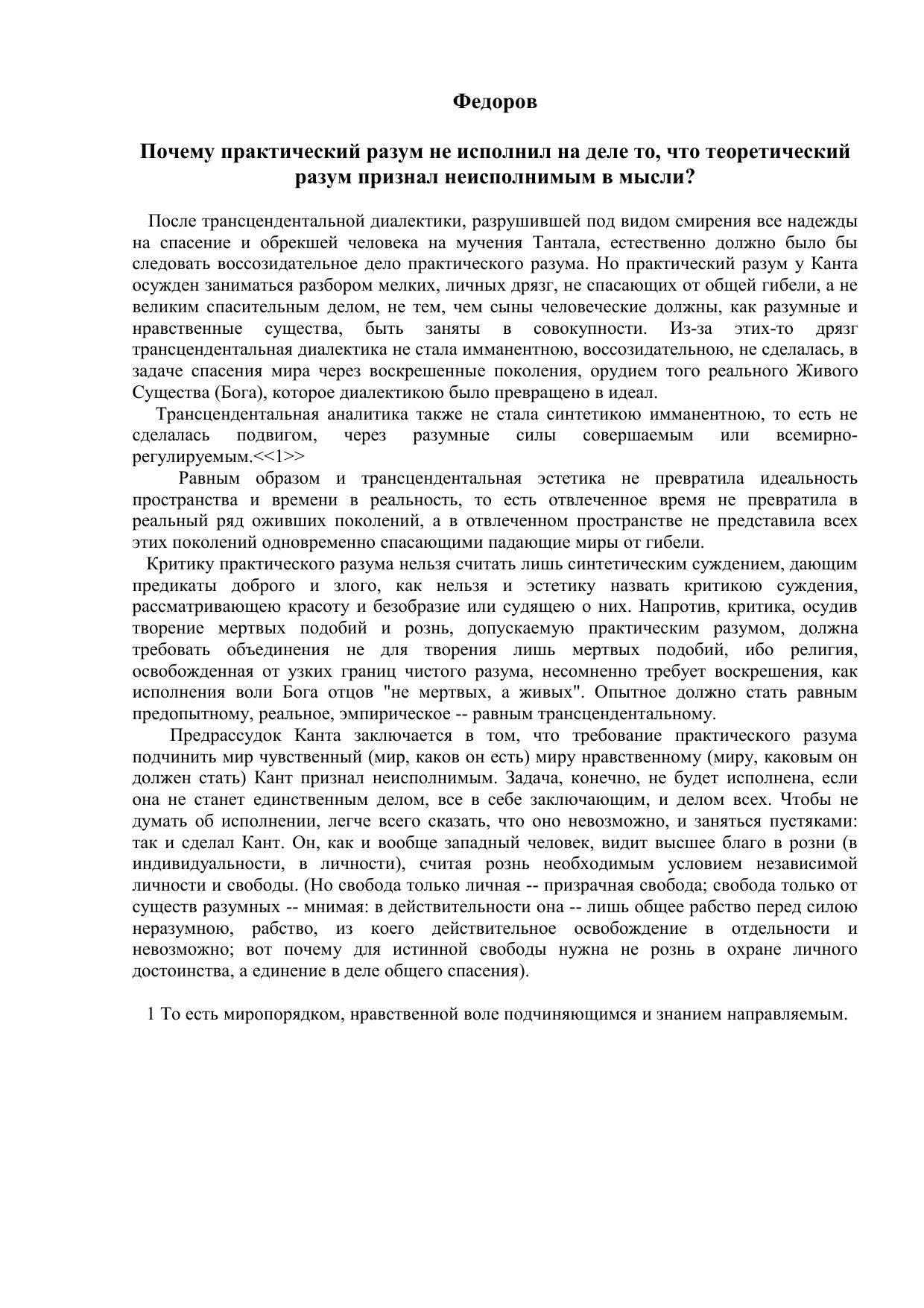 Почему практический разум не исполнил на деле то, что теоретический разум признал неисполнимым в мысли?