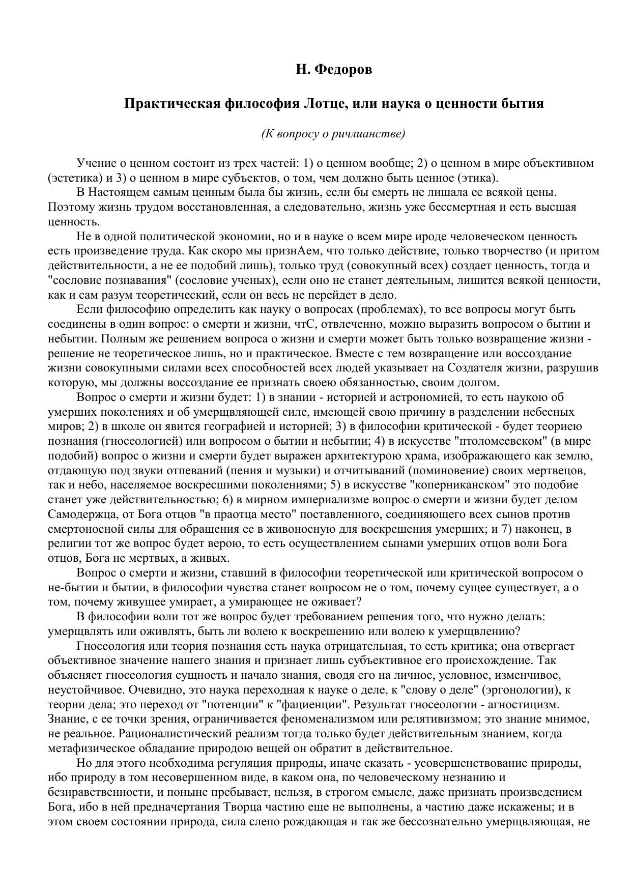Практическая философия Лотце, или наука о ценности бытия