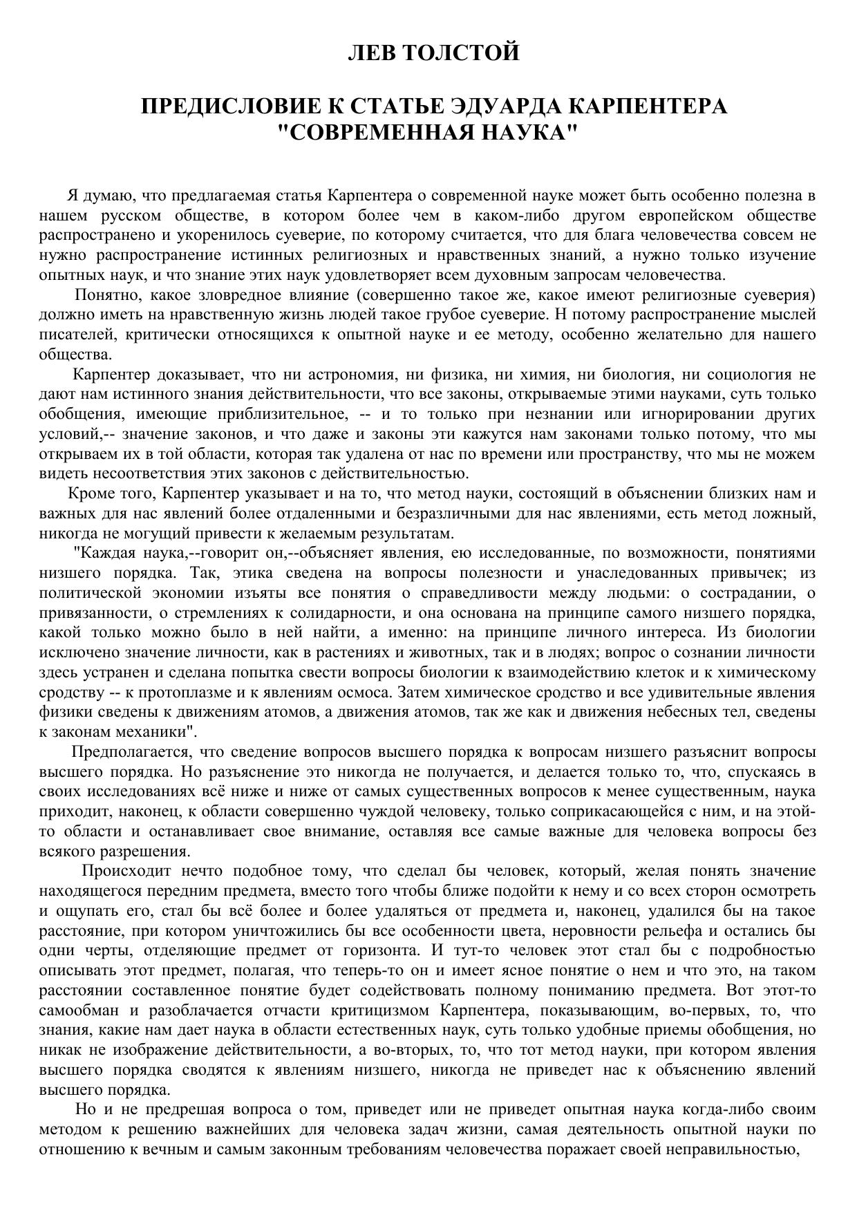 Предисловье к статье Эдуарда Карпентера «Современная наука»