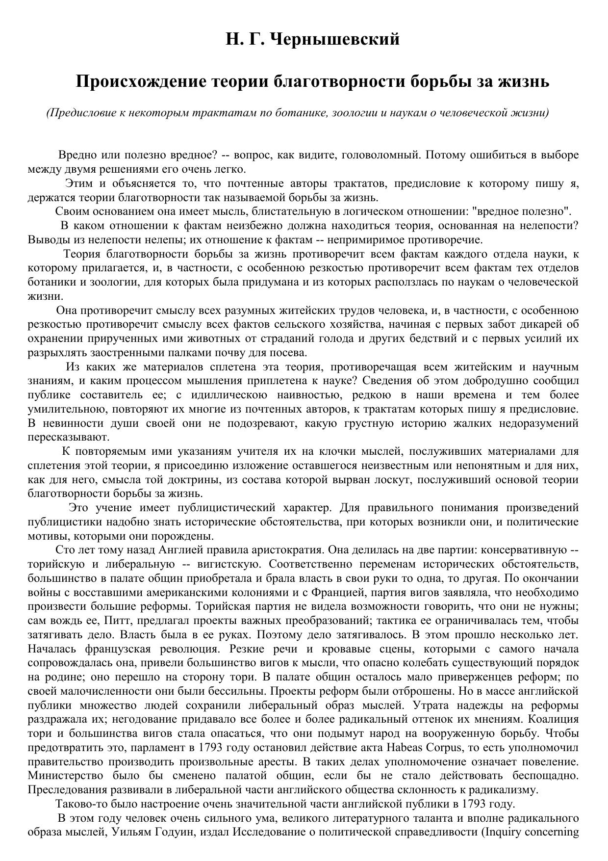Происхождение теории благотворности борьбы за жизнь. Предисловие к некоторым трактатам по ботанике, зоологии и наукам о человеческой жизни