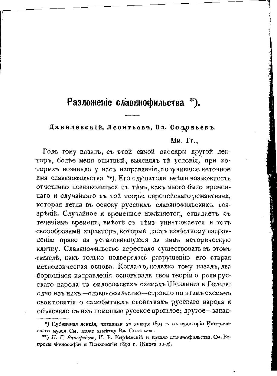 Разложение славянофильства. Данилевский, Леонтьев. Вл. Соловьев. М., 1893.