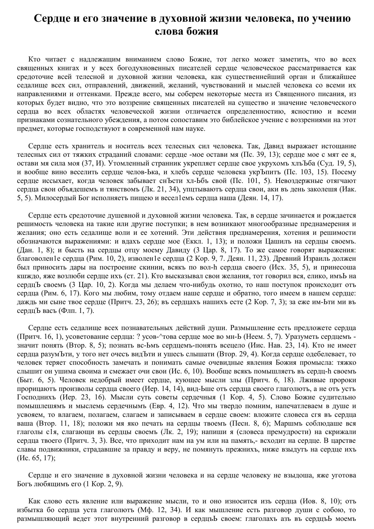 Сердце и его значение в духовной жизни человека по учению слова Божия