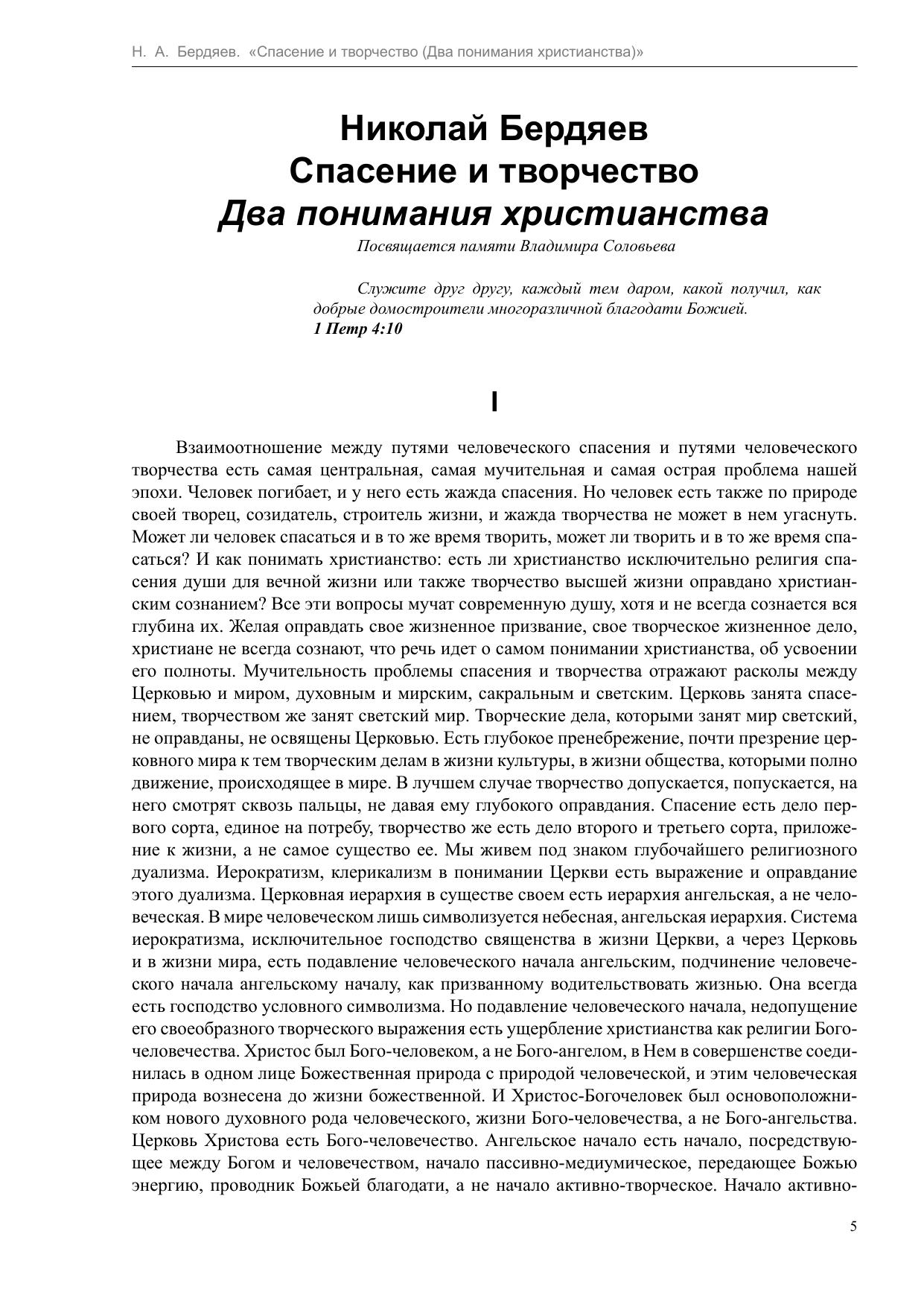 Спасение и творчество (Два понимания христианства)