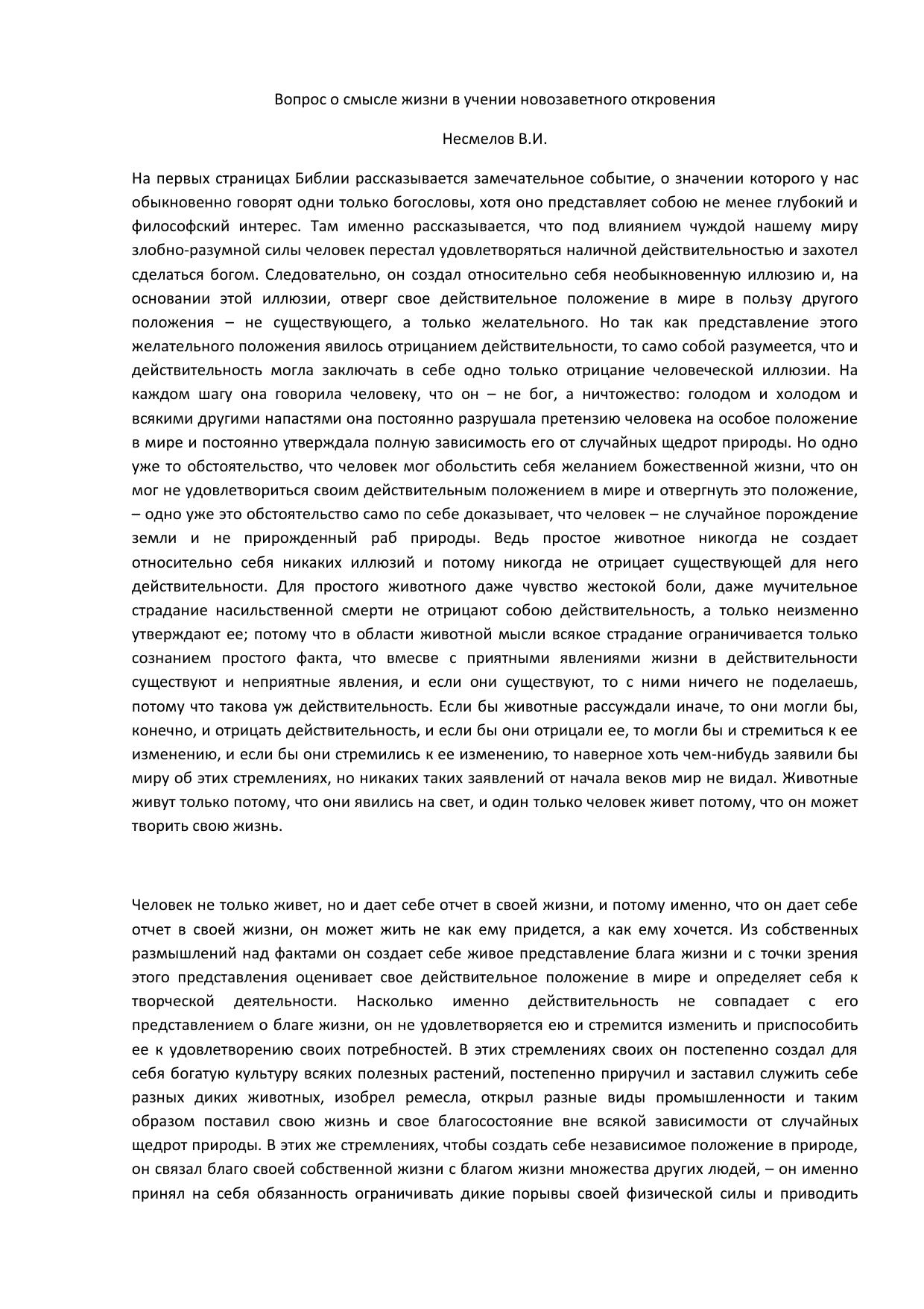 Вопрос о смысле жизни в учении новозаветного Откровения