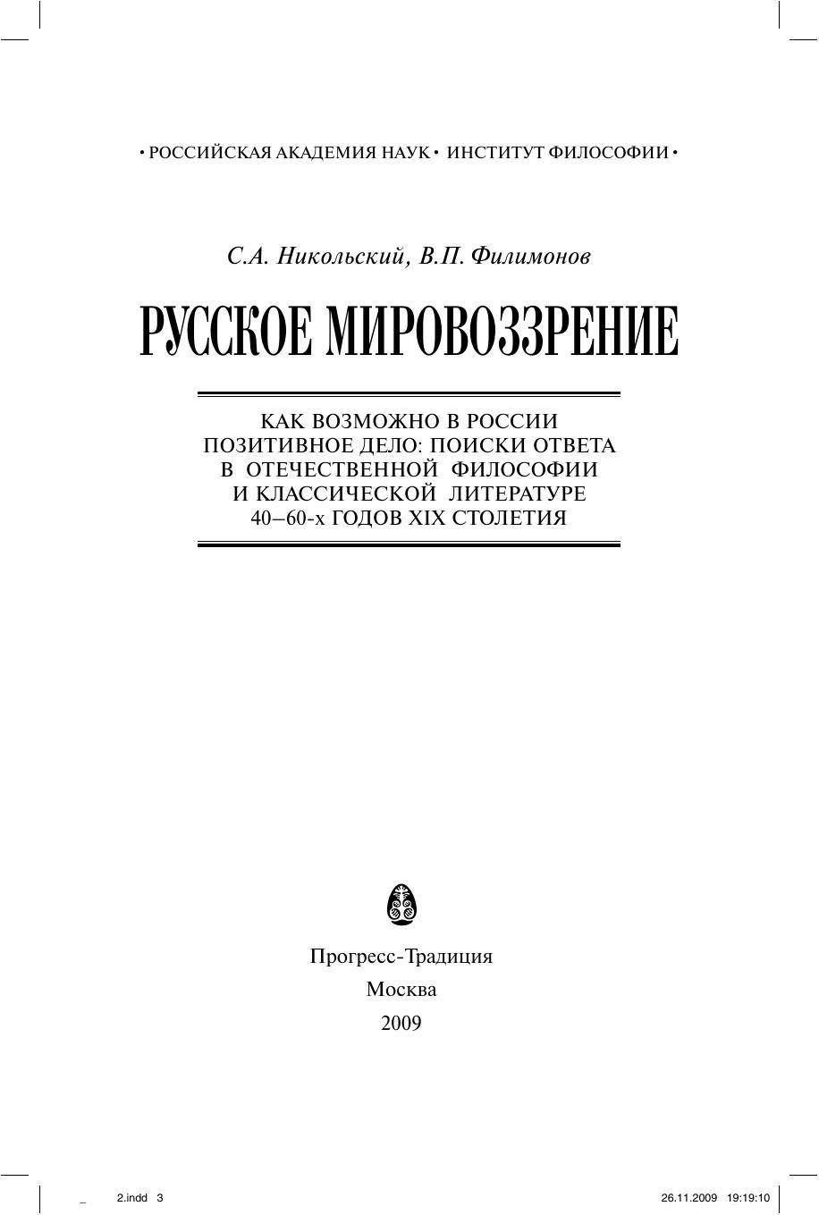 Русское мировоззрение. Как возможно в России позитивное дело: поиски ответа в отечественной философии и классической литера туре 40–60-х годов ХIХ столетия