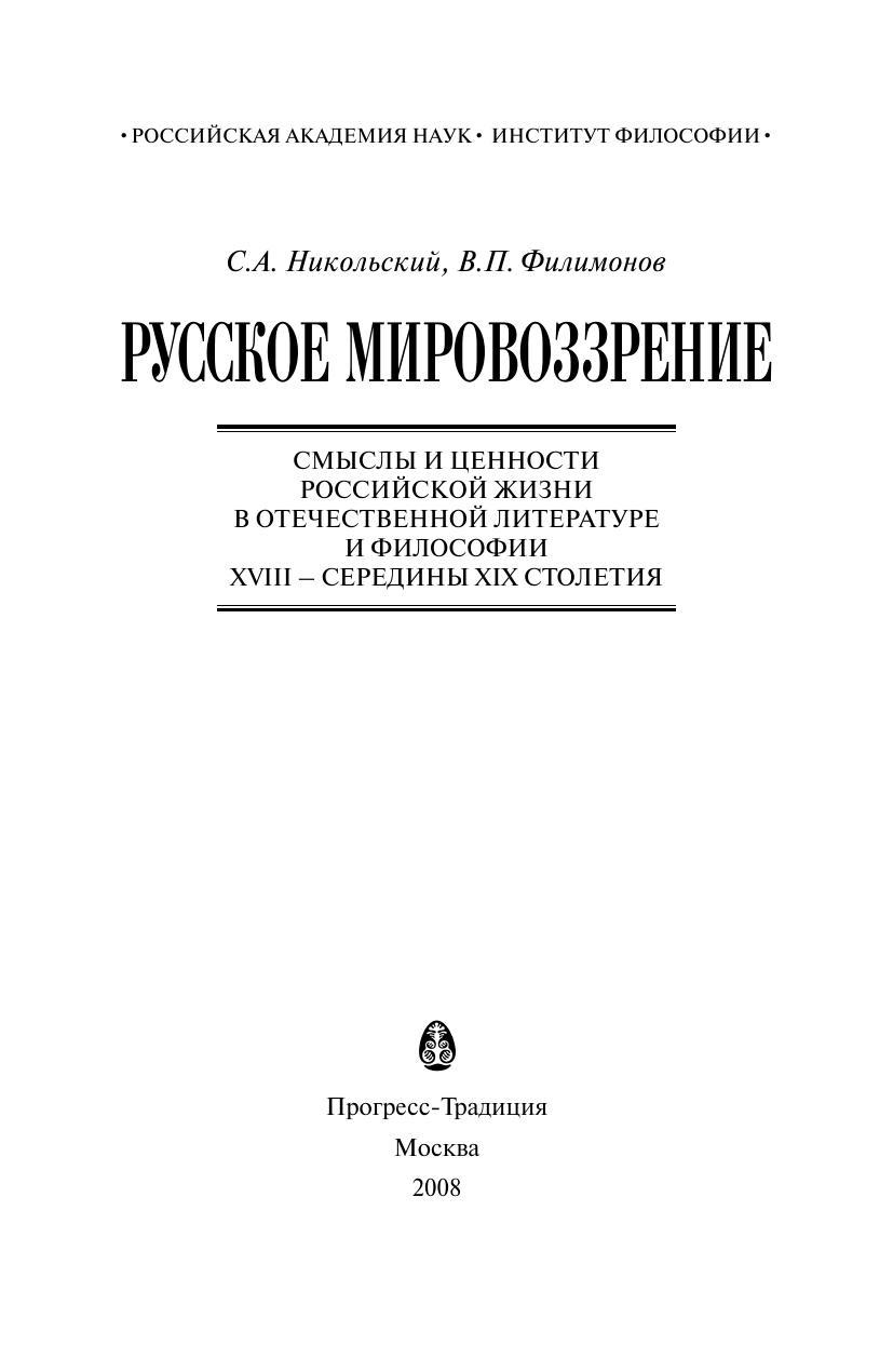 Русское мировоззрение. Смыслы и ценности российской жизни в отечественной литературе и философии ХVIII – середины XIX столетия