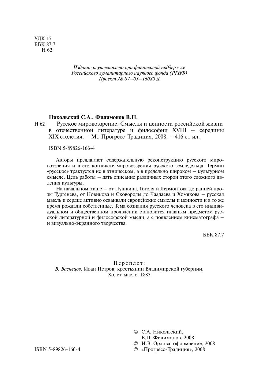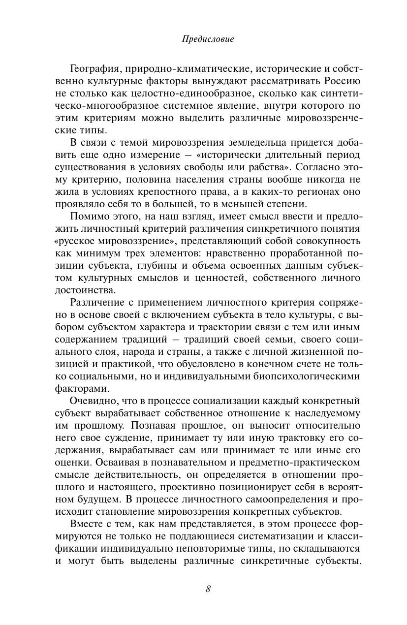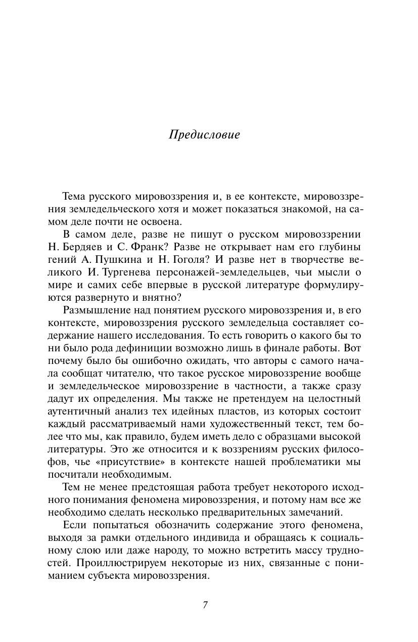 Авторы предлагают содержательную реконструкцию русского мировоззрения и в его контексте мировоззрения русского земледельца. Термин "русское" трактуется не в этническом, а в предельно широком – культурном смысле. Цель работы – дать описание различных сторон этого сложного явления культуры.