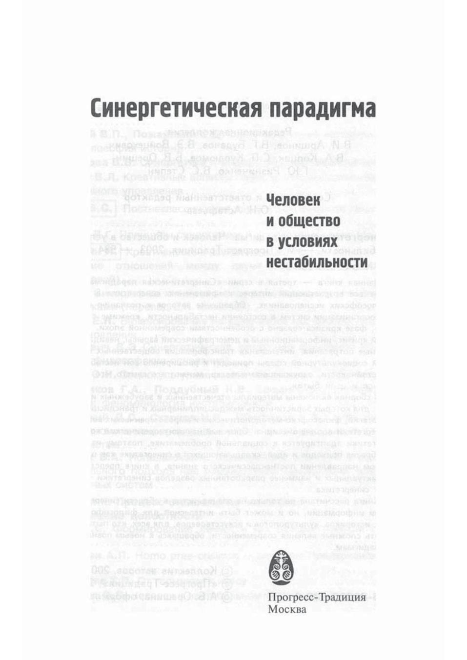 Синергетическая парадигма. Человек и общество в условиях нестабильности