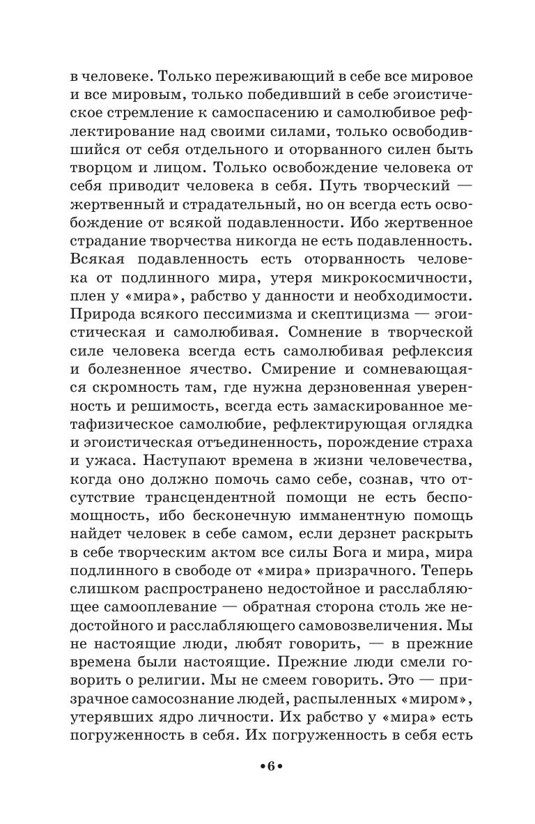 Николай Александрович Бердяев (1874–1948) — религиозный и политический философ, представитель русского экзистенциализма и персонализма, автор оригинальной концепции свободы и концепции нового средневековья. «Смысл творчества. Опыт оправдания человека» — одна из главных работ философа. Книга создавалась в 1912–1914 гг. в ситуации отчуждения Бердяева от религиозно-философского общества и группы философов (С. Н. Булгаков, Е. Н. Трубецкой, П. А. Флоренский и др.), как ответ на идеи Ф. Ницше, К. Маркса, Ф. М. Достоевского, Э. Гуссерля и др. Сам Бердяев считал «Смысл творчества» самым вдохновенным своим произведением, поскольку в нем впервые нашла выражение его оригинальная философская мысль. Адресовано студентам средних и высших учебных заведений и широкому кругу читателей. Печатается по изданию: Бердяев Н. А. Смысл творчества: Опыт оправдания человека. М., 1916. Nikolai Aleksandrovich Berdyaev (1874–1948) was a religious and political philosopher, a representative of Russian existentialism and personalism, the author of an original concept of freedom and the concept of the new Middle Ages. The Meaning of the Creative Act. The Experience of Human Justification is one of the philosopher’s main works. The book was created in 1912–1914 in a situation of Berdyaev’s alienation from the religious philosophical society and a group of philosophers (S. N. Bulgakov, E. N. Trubetskoy, P. A. Florensky, and others), as a response to ideas of F. Nietzsche, K. Marx, F. M. Dostoevsky, E. Husserl, and others. Berdyaev himself considered The Meaning of the Creative Act to be his most inspired work, since it was the first one to express his original philosophical thought. Addressed to students of colleges and higher schools and a wide range of readers.