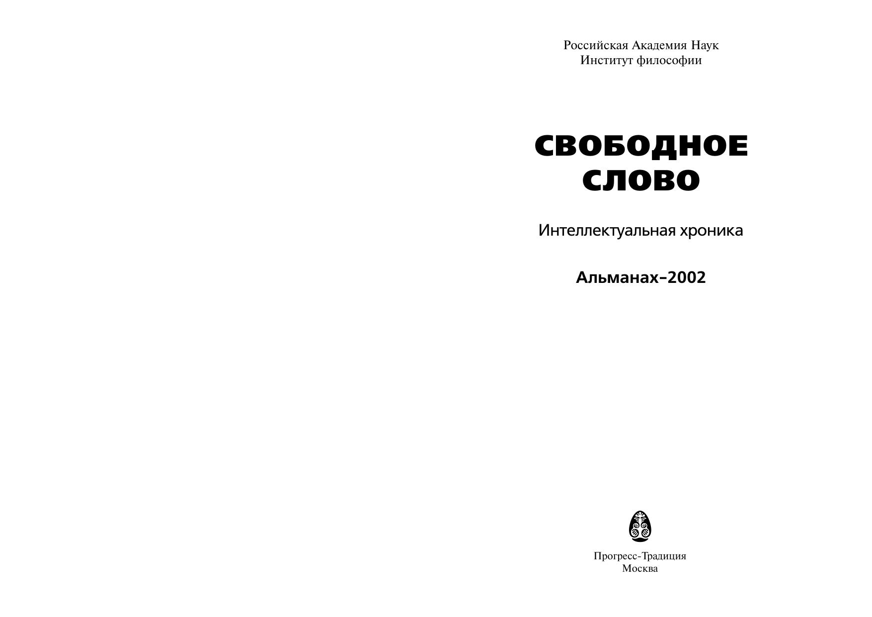 Свободное слово: Интеллектуальная хроника. Альманах 2002