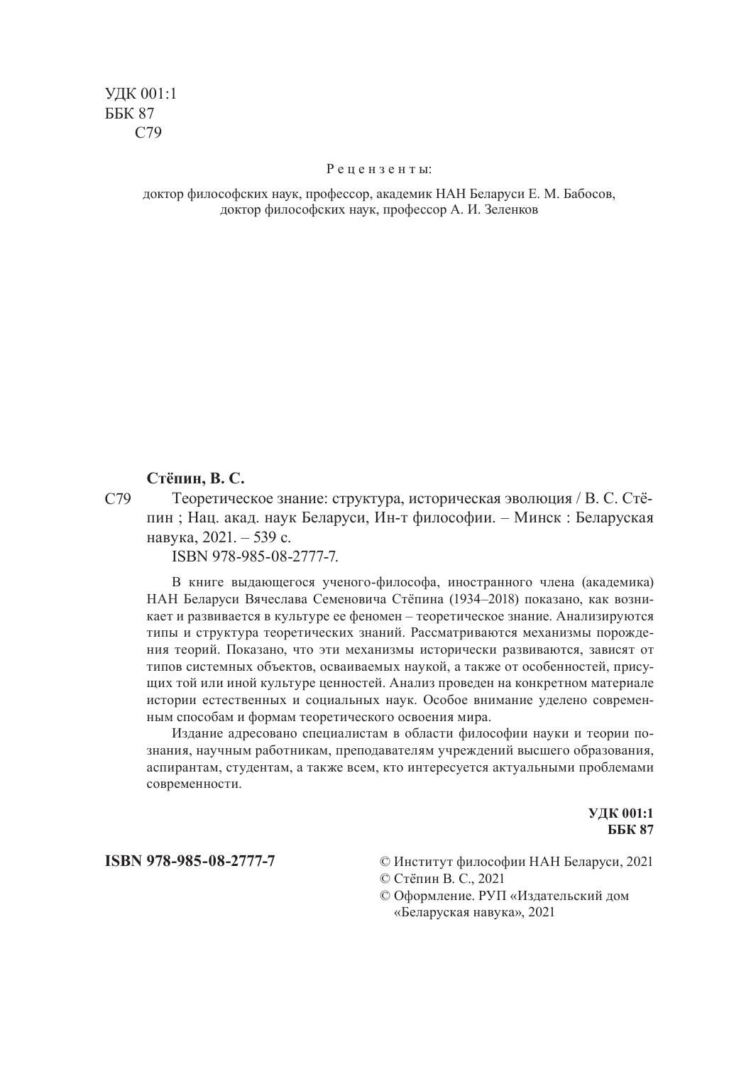 Издание адресовано специалистам в области философии науки и теории познания, научным работникам, преподавателям учреждений высшего образования, аспирантам, студентам, а также всем, кто интересуется актуальными проблемами современности.