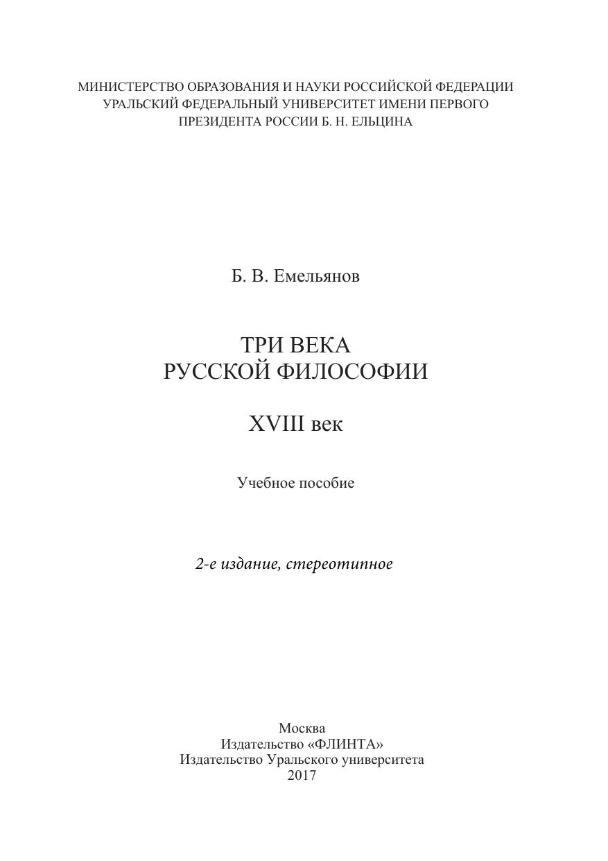 Три века русской философии. XVIII век