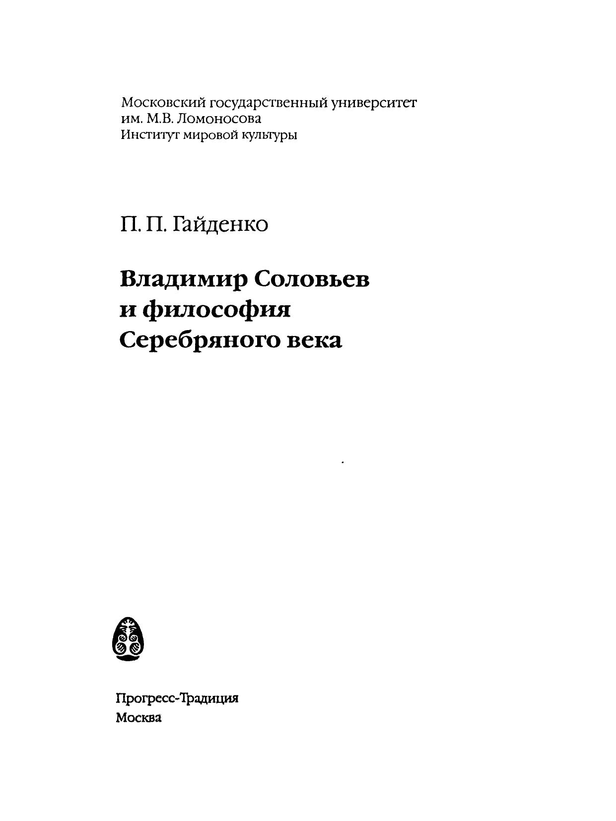Владимир Соловьев и философия Серебрянного века