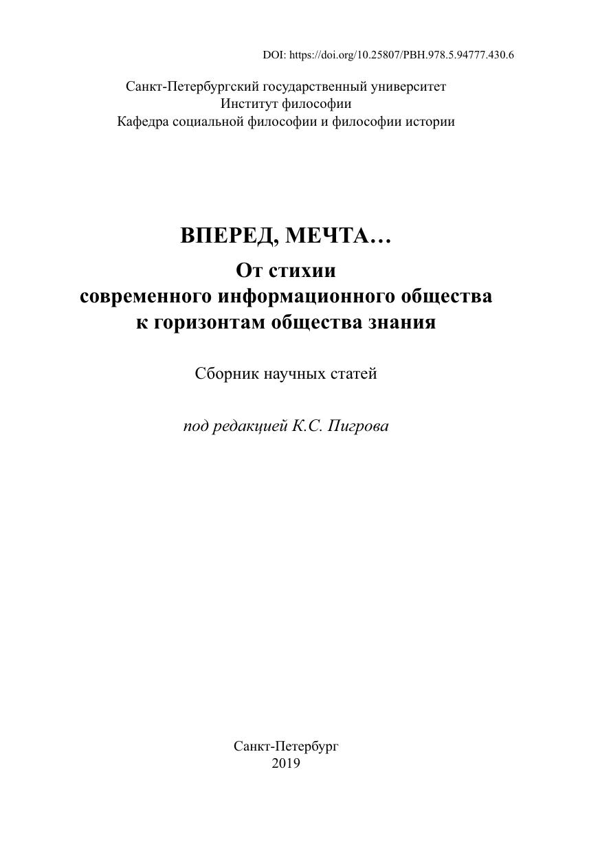 Вперед, мечта… От стихии современного информационного общества к горизонтам общества знания