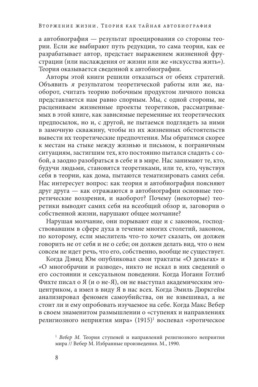 Если к классическому габитусу философа традиционно принадлежала сдержанность в демонстрации собственной частной сферы, то в ХХ веке отношение философов и вообще теоретиков к взаимосвязи публичного и приватного, к своей частной жизни, к жанру автобиографии стало более осмысленным и разнообразным. Данная книга показывает это разнообразие на примере 25 видных теоретиков ХХ века и исследует не столько соотношение теории с частным существованием каждого из авторов, сколько ее взаимодействие с их представлениями об автобиографии. В книге предложен интересный подход к интеллектуальной истории ХХ века, который будет полезен и специалисту, и студенту, и просто любознательному читателю.