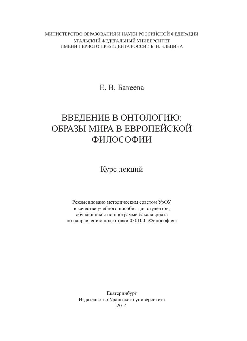 Введение в онтологию: образы мира в европейской философии: курс лекций: учеб. пособие