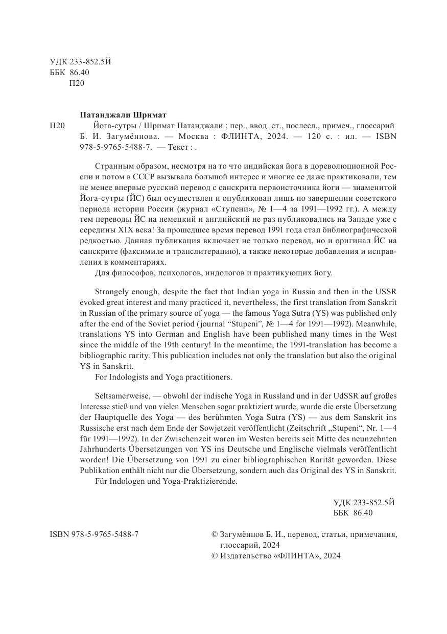 только перевод, но и оригинал ЙС на санскрите (факсимиле и транслитерацию), а также некоторые добавления и исправления в комментариях.