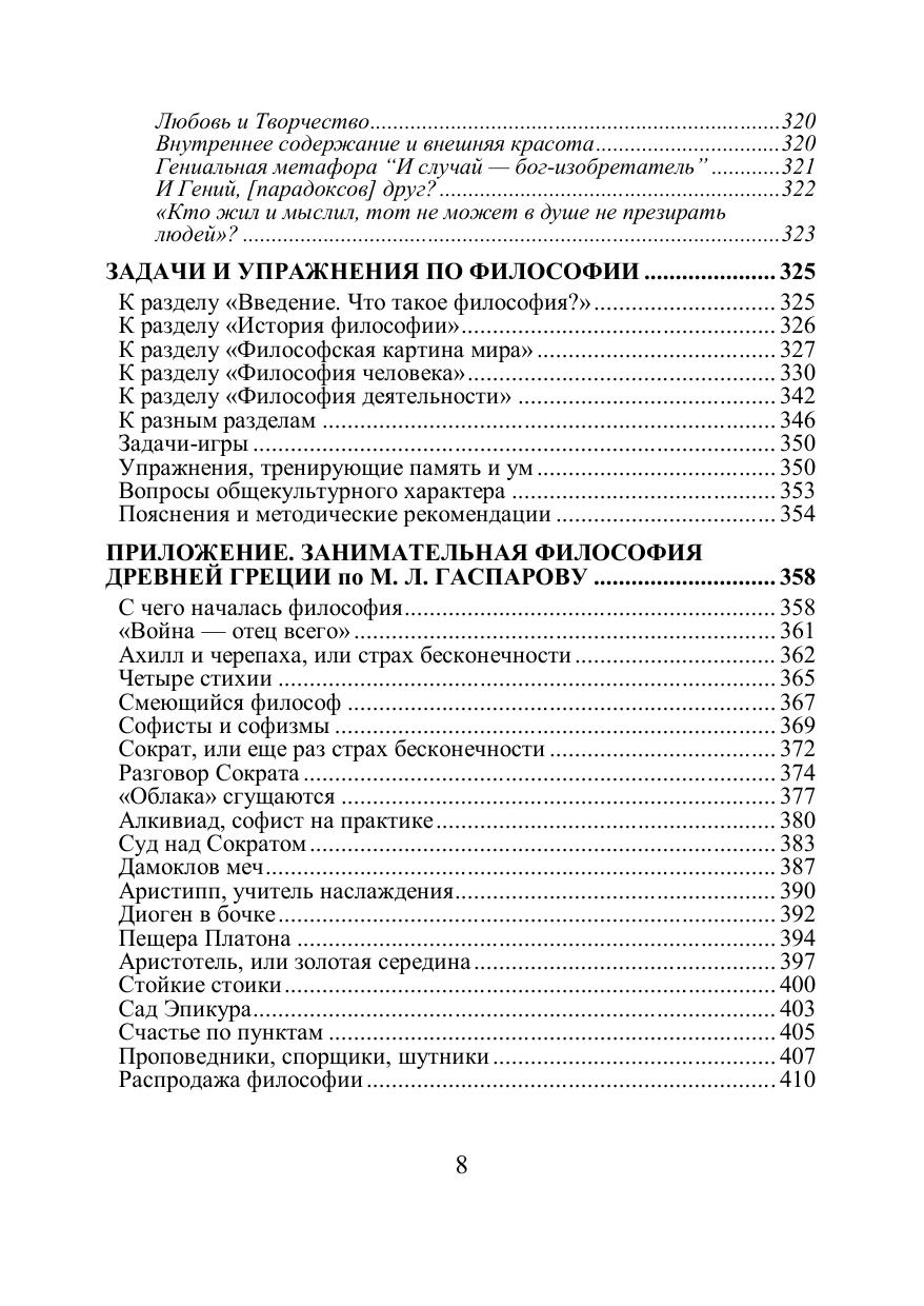 В отдельном приложении приводятся интересные и поучительные рассказы о философии из книг М.Л.Гаспарова "Занимательная Греция".