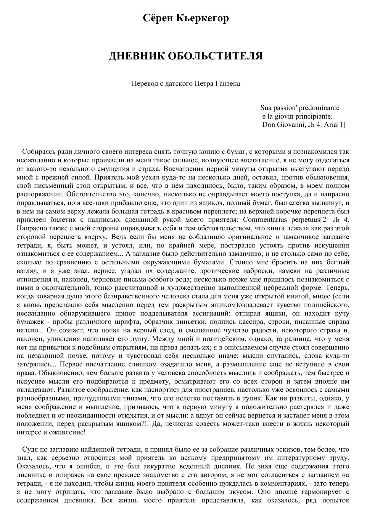 Дневник обольстителя (Пер. с дат. П. Г. Ганзена)