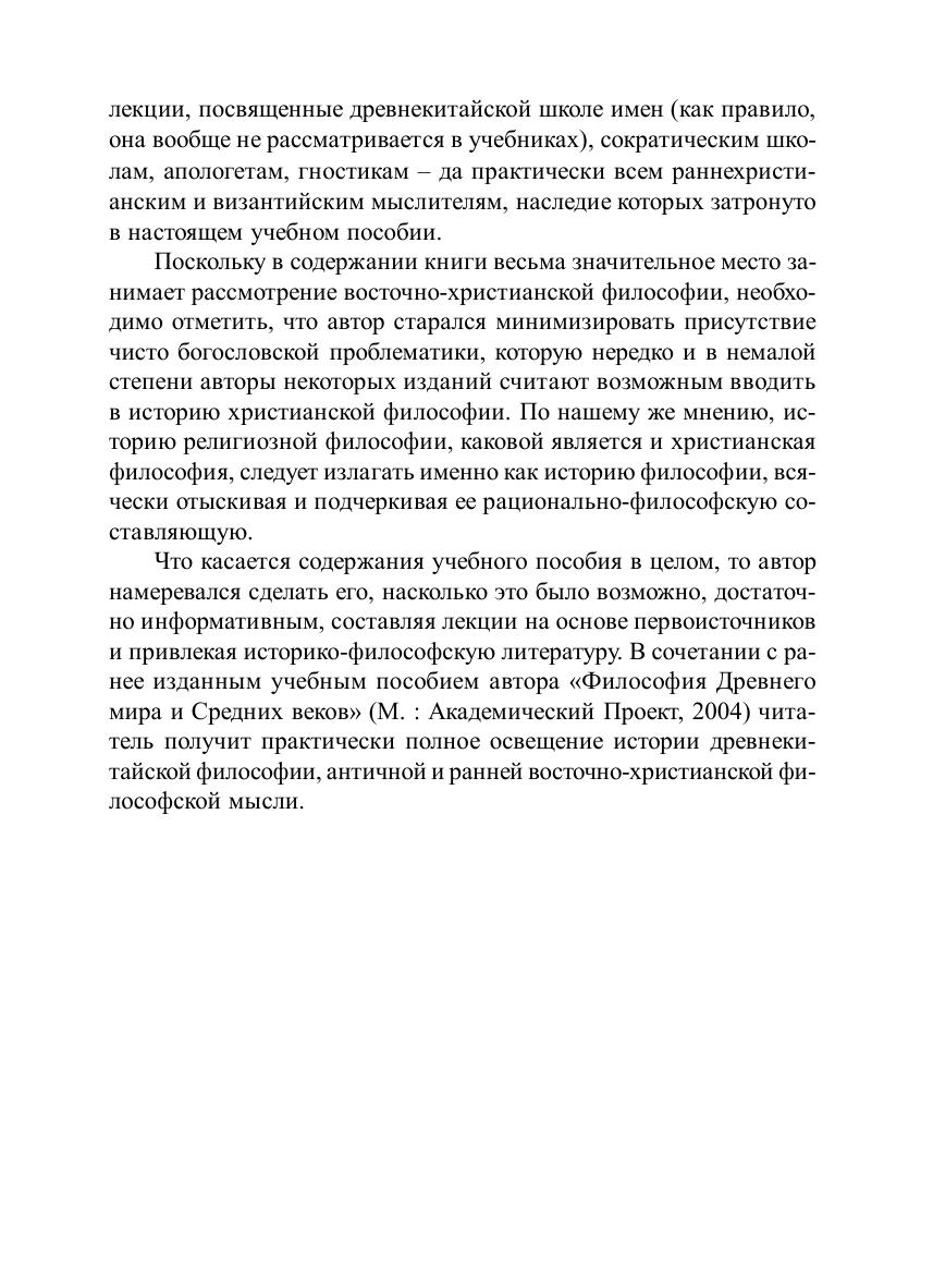 В учебном пособии представлены философские воззрения, имеющие ключевое значение для изучения истории философии отдельных стран, а также истории отдельных философских школ и направлений. Дается основательное документированное изложение философских учений древности и раннего Средневековья исключительно на основе первоисточников и с привлечением современных историко-философских исследований. Разработка тем некоторых лекций имеет оригинальный характер, поскольку они не нашли еще соответствующего отражения в учебной литературе. Для студентов – философов, историков, а также для всех интересующихся историей философии указанного периода.