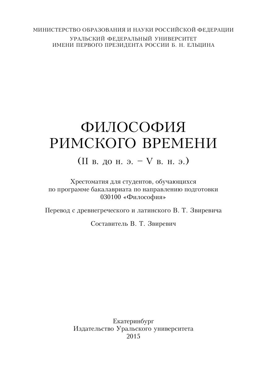 Философия римского времени (I в. до н. э. – V в. н. э.) : хрестоматия