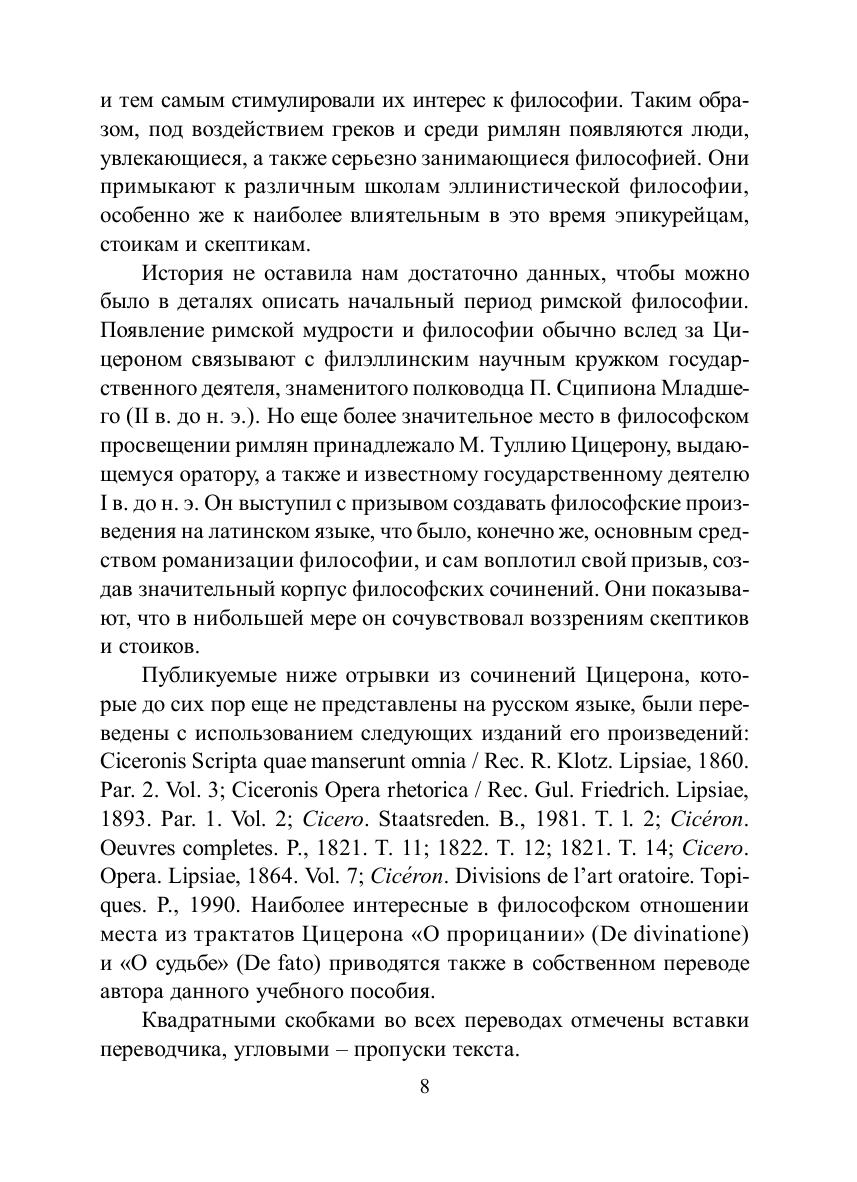 В подборке материалов к истории философии римского времени использованы произведения М. Туллия Цицерона, Диона Хрисостома, М. Корнелия Фронтона, Макробия Феодосия и Фавония Евлогия, не представленные еще на русском языке. Она может послужить в качестве хрестоматии в процессе как изучения, так и преподавания истории античной философии. Хрестоматия для студентов, обучающихся по программе бакалавриата по направлению подготовки 030100 «Философия».