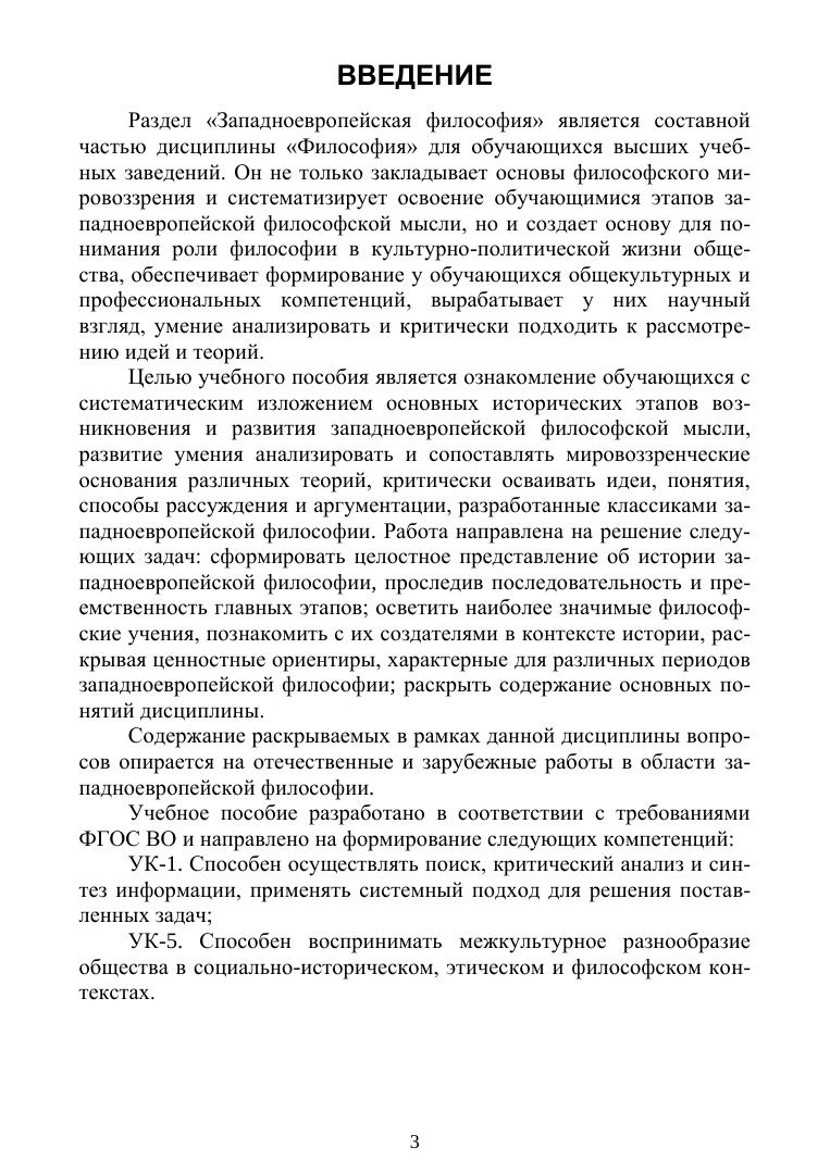 В учебном пособии представлены ключевые темы философской мысли эпохи Античности, Средних веков, эпохи Возрождения, Нового времени и современной философии. Историко-философский анализ основных концепций выдающихся западноевропейских философов призван помочь обучающимся в самостоятельном освоении классических философских текстов и в формировании собственных мировоззренческих позиций. Учебное пособие разработано для студентов вузов нефилософских направлений подготовки и оснащено тематическими иллюстрациями, способствующими образному и прочному запоминанию усвоенных знаний.