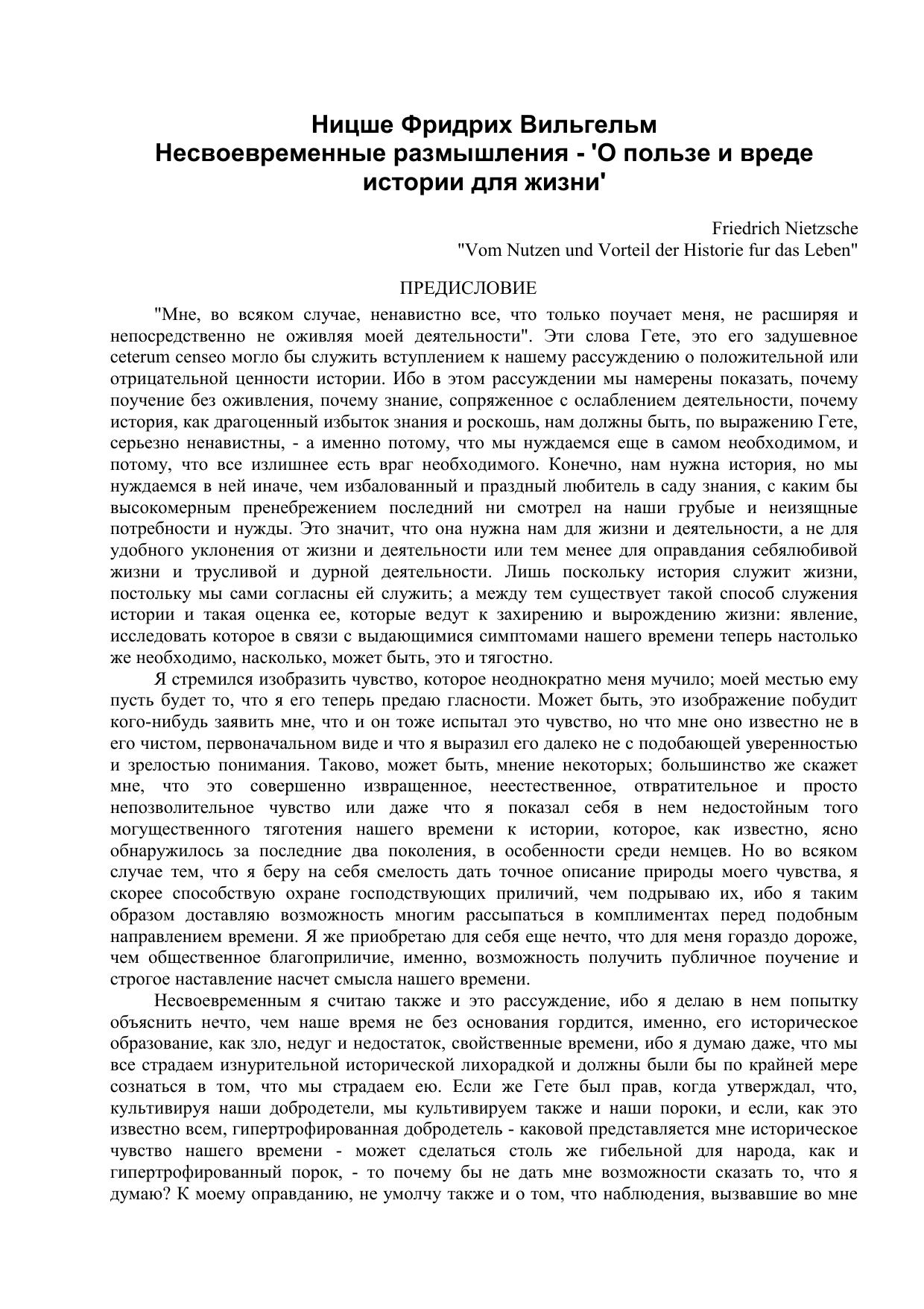 Несвоевременные размышления: О пользе и вреде истории для жизни Давид Штраус в роли исповедника и писателя Шопенгауэр как воспитатель Рихард Вагнер в Байрейте (Пер. Я. Бермана)