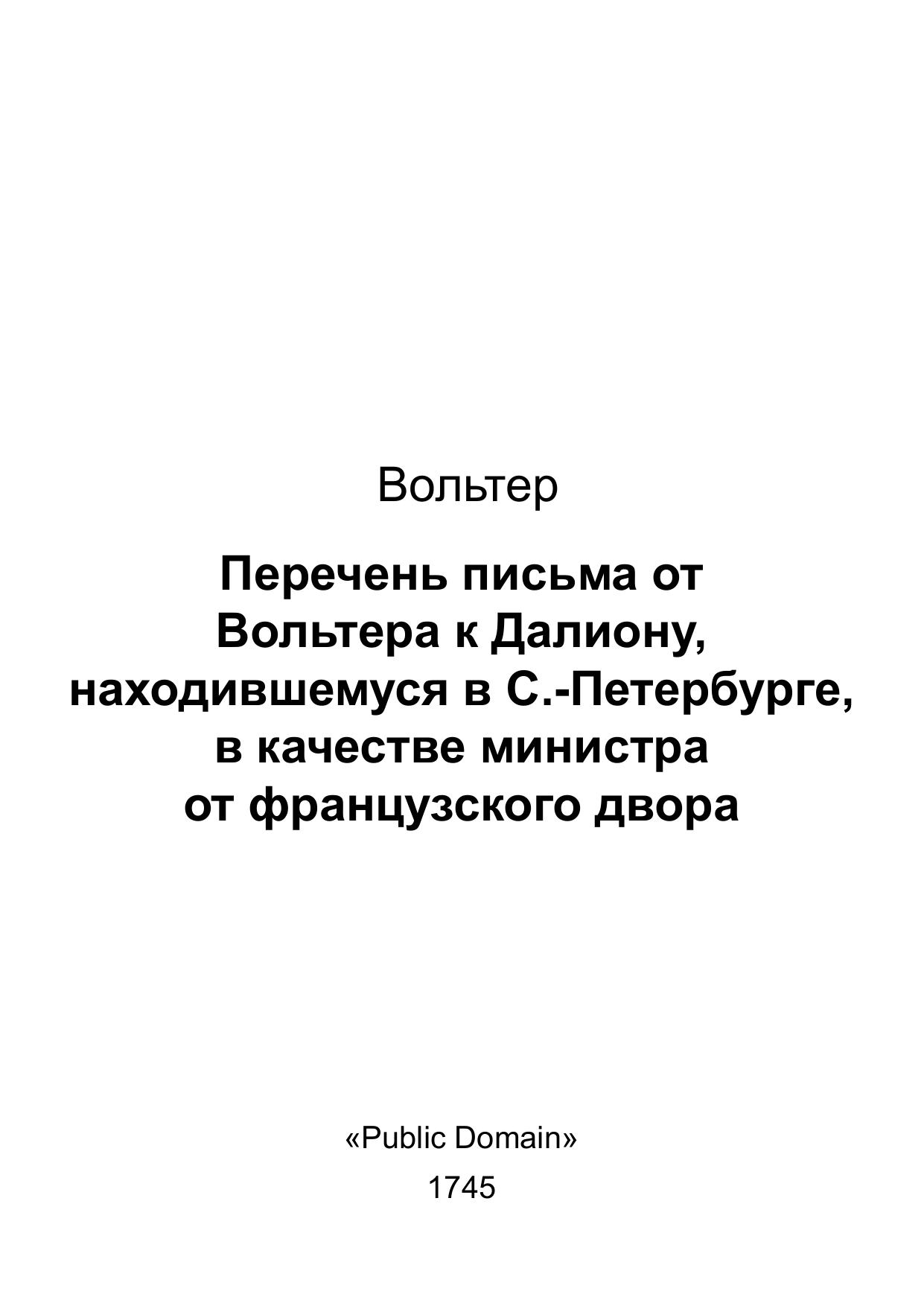 Перечень письма от Вольтера к Далиону, находившемуся в С.-Петербурге, в качестве министра от французского двора