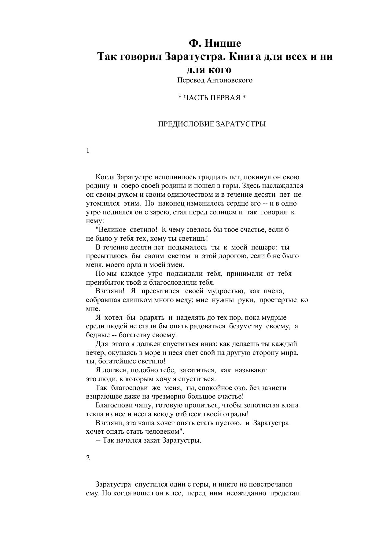 Так говорил Заратустра. Книга для всех и ни для кого (Пер. Ю. М. Антоновского)