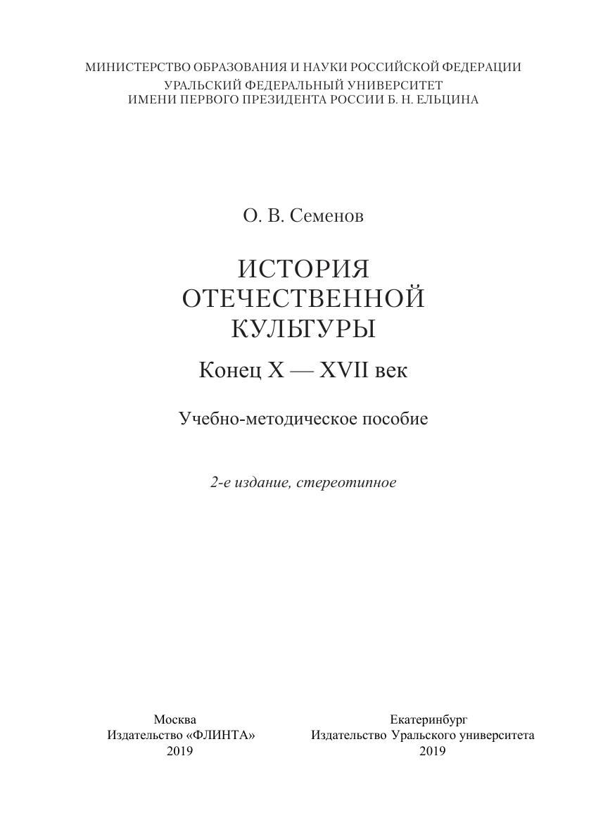 История отечественной культуры (конец X - XVII век): учеб.-метод. пособие