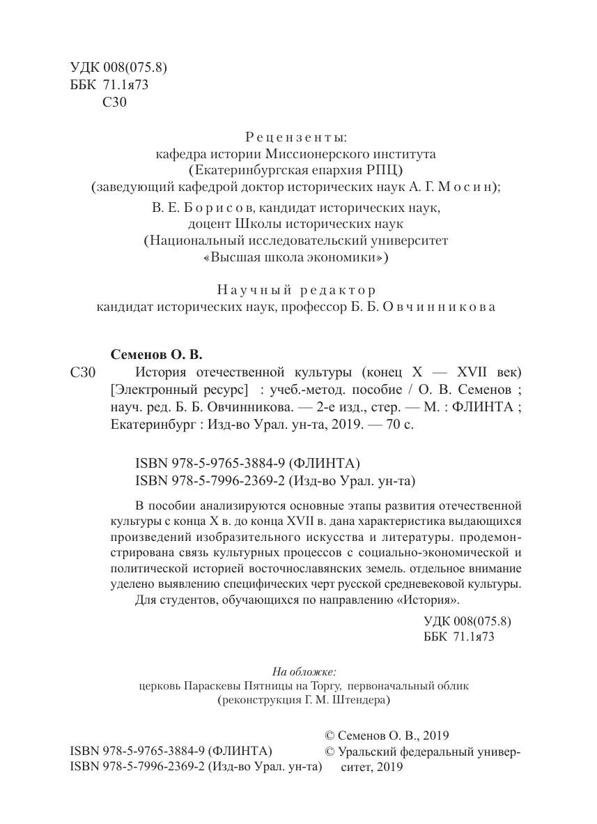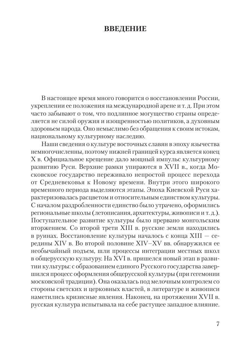 В пособии анализируются основные этапы развития отечественной культуры с конца X в. до конца XVII в. дана характеристика выдающихся произведений изобразительного искусства и литературы. продемонстрирована связь культурных процессов с социально-экономической и политической историей восточнославянских земель. отдельное внимание уделено выявлению специфических черт русской средневековой культуры.