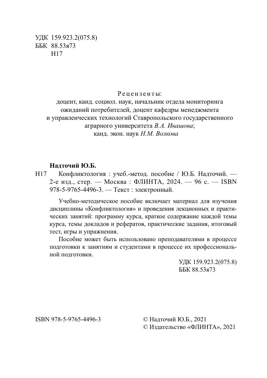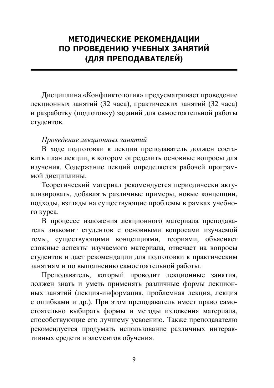 Учебно-методическое пособие включает материал для изучения дисциплины «Конфликтология» и проведения лекционных и практических занятий: программу курса, краткое содержание каждой темы курса, темы докладов и рефератов, практические задания, итоговый тест, игры и упражнения. Пособие может быть использовано преподавателями в процессе подготовки к занятиям и студентами в процессе их профессиональной подготовки.