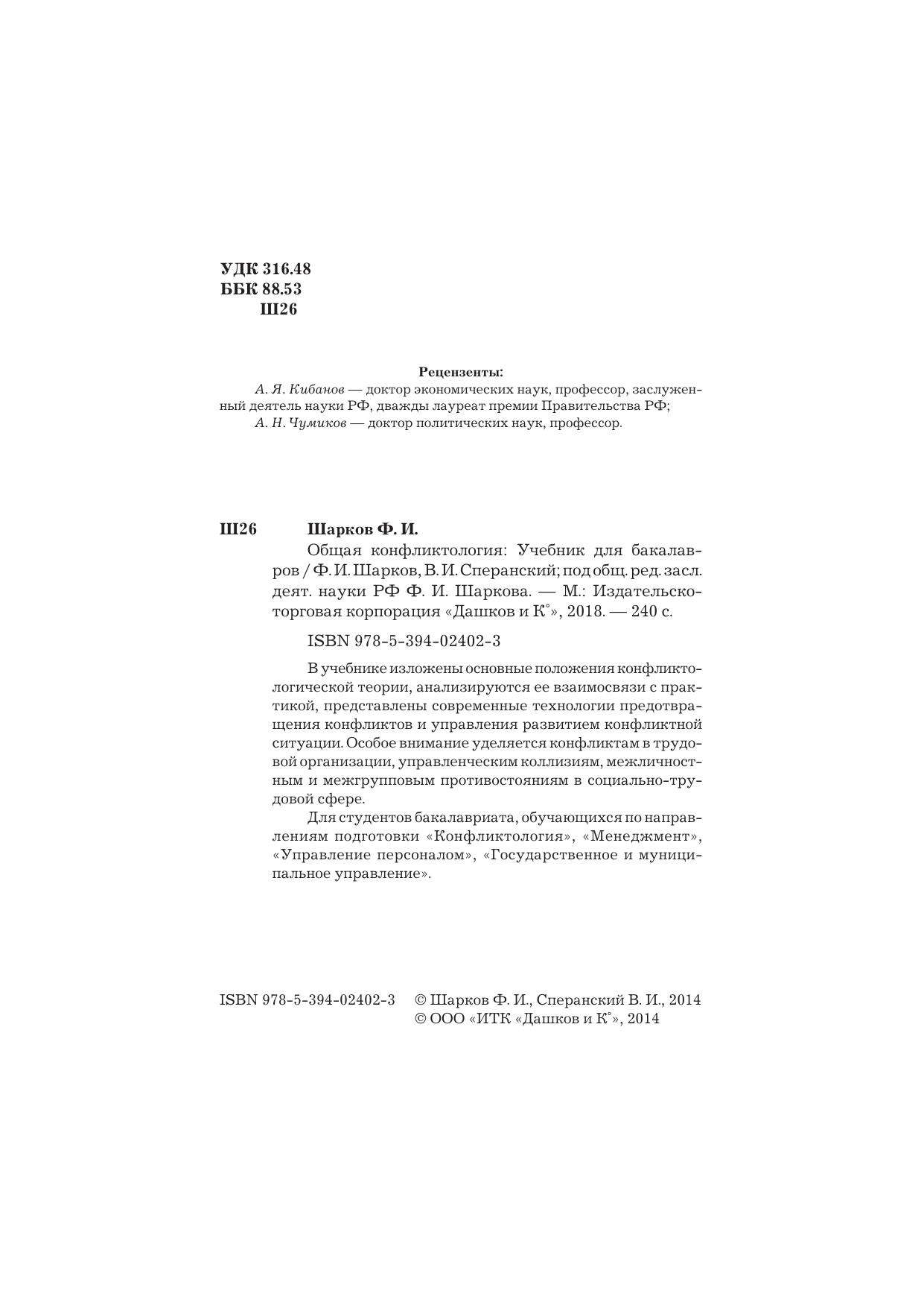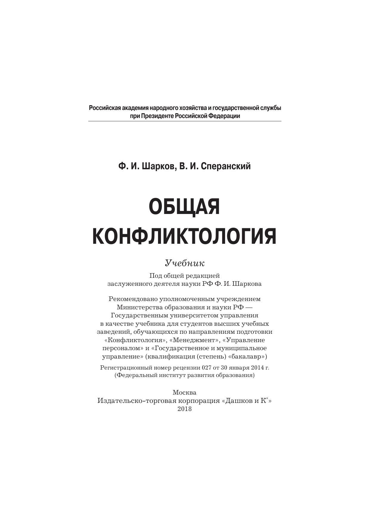 В учебнике изложены основные положения конфликтологической теории, анализируются ее взаимосвязи с практикой, представлены современные технологии предотвращения конфликтов и управления развитием конфликтной ситуации. Особое внимание уделяется конфликтам в трудовой организации, управленческим коллизиям, межличностным и межгрупповым противостояниям в социально-трудовой сфере. Для студентов бакалавриата, обучающихся по направлениям подготовки «Конфликтология», «Менеджмент», «Управление персоналом», «Государственное и муниципальное управление».