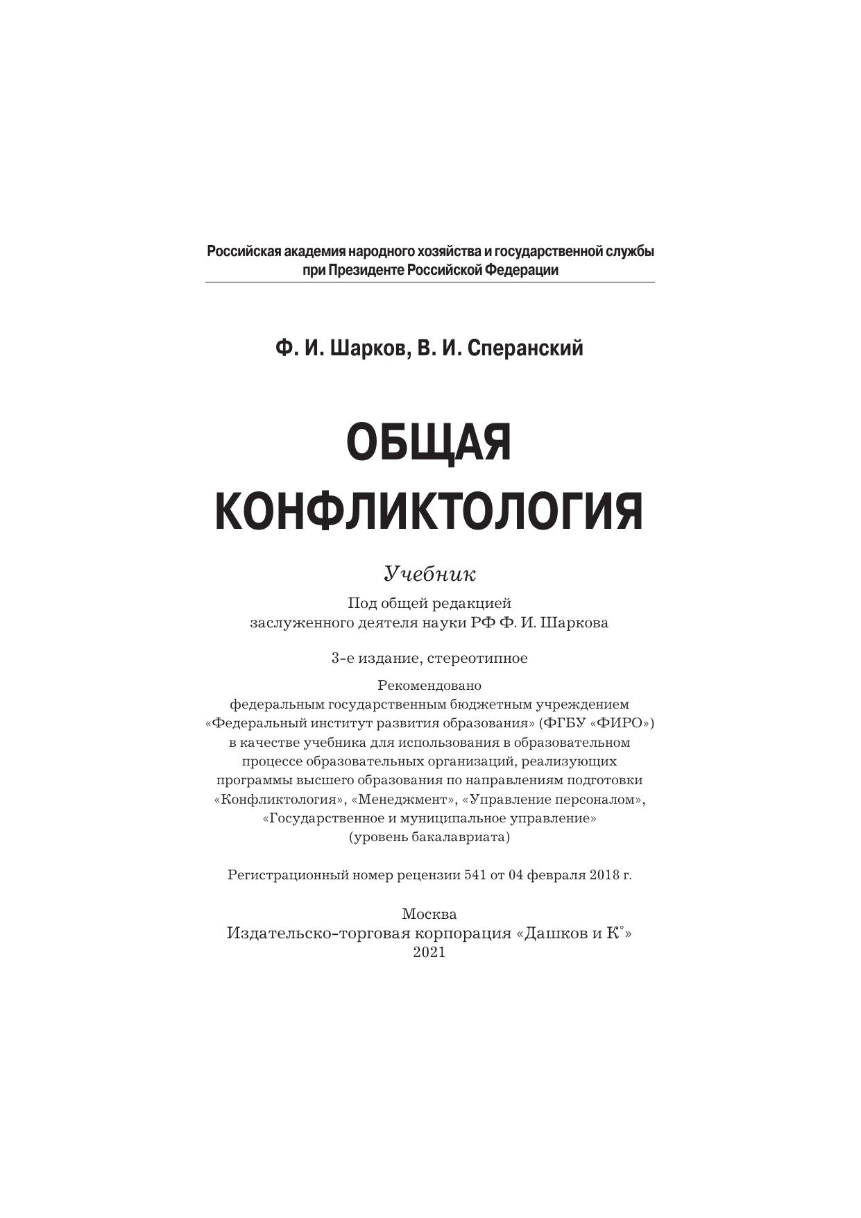 В учебнике изложены основные положения конфликтологической теории, анализируются ее взаимосвязи с практикой, представлены современные технологии предотвращения конфликтов и управления развитием конфликтной ситуации. Особое внимание уделяется конфликтам в трудовой организации, управленческим коллизиям, межличностным и межгрупповым противостояниям в социально-трудовой сфере. Для студентов бакалавриата, обучающихся по направлениям подготовки «Конфликтология», «Менеджмент», «Управление персоналом», «Государственное и муниципальное управление».
