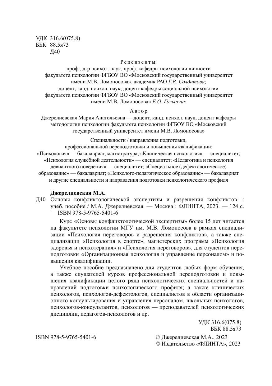 Курс «Основы конфликтологической экспертизы» более 15 лет читается на факультете психологии МГУ им. М.В. Ломоносова в рамках специализации «Психология переговоров и разрешения конфликтов», а также специализации «Психология в спорте», магистерских программ «Психология здоровья и психотерапия» и «Психология переговоров», для студентов переподготовки «Организационная психология и управление персоналом» и повышения квалификации. Учебное пособие предназначено для студентов любых форм обучения, а также слушателей курсов профессиональной переподготовки и повышения квалификации целого ряда психологических специальностей и направлений подготовки психологического профиля; а также клинических