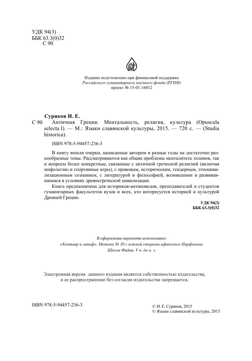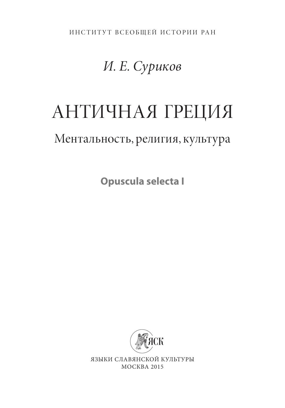 В книгу вошли очерки, написанные автором в разные годы на достаточно разнообразные темы. Рассматриваются как общие проблемы менталитета эллинов, так и вопросы более конкретные, связанные с античной греческой религией (включая мифологию и спортивные игры), с правовым, историческим, тендерным, этноциви-лизационным сознанием, с литературой и философией, возникшими и развивавшимися в условиях древнегреческой цивилизации.Книга предназначена для историков-антиковедов, преподавателей и студентов гуманитарных факультетов вузов и всех, кто интересуется историей и культурой Древней Греции.