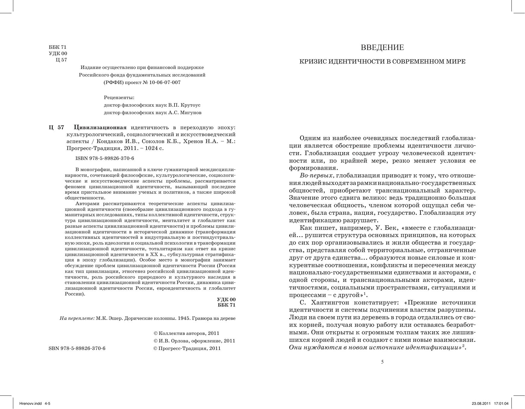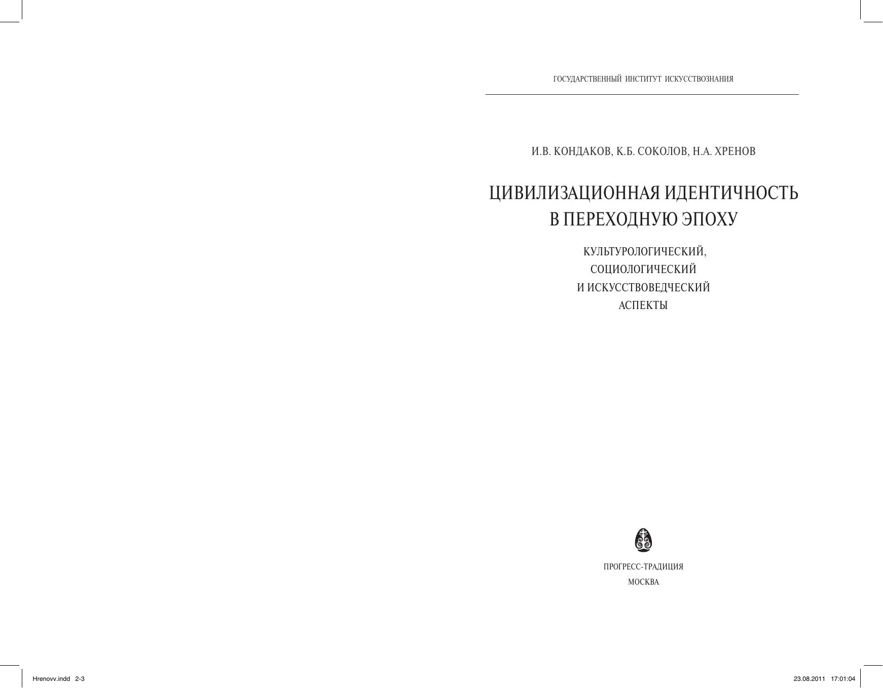 Цивилизационная идентичность в переходную эпоху: культурологический, социологический и искусствоведческий аспекты