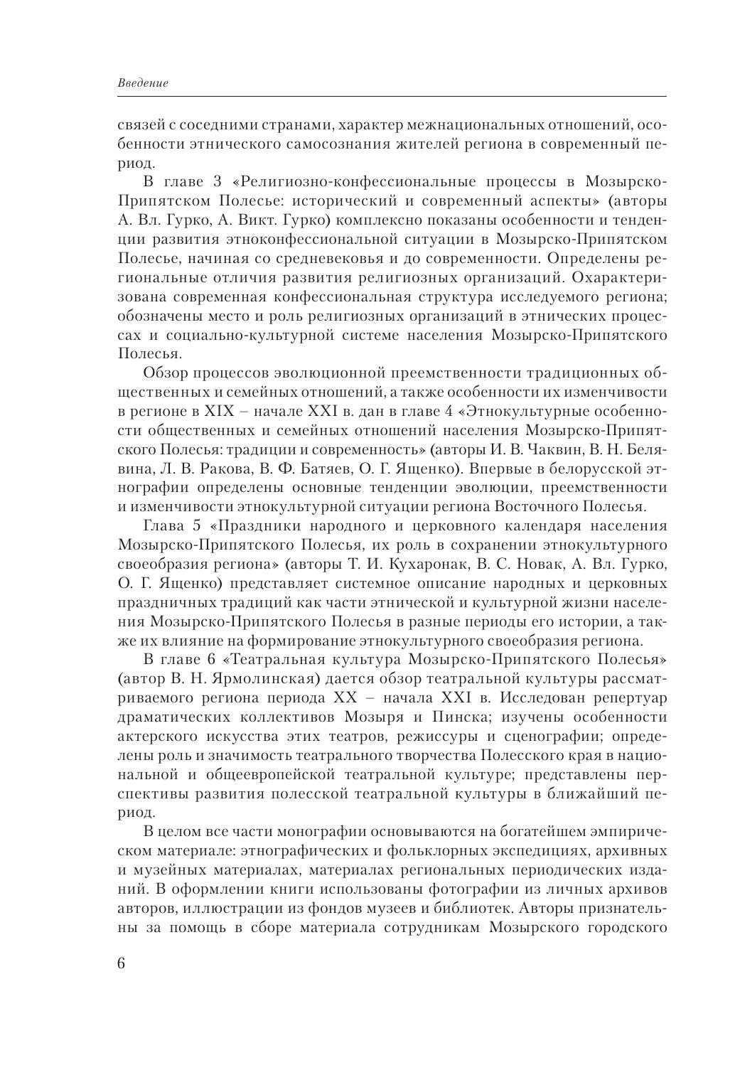 Освещаются важнейшие аспекты культуры: материальной (традиции питания, особенности застройки и построек, костюма), социальной (семейные и общественные отношения), духовной (конфессиональные процессы, праздники, обряды, обычаи, современный театр), этнической истории, демографических и миграционных процессов Восточного Полесья. Впервые вводятся в научный оборот материалы полевых этнографических исследований, архивные источники. Адресуется историкам, краеведам, студентам, организаторам регионального туризма, а также всем, кто интересуется историей родного края.