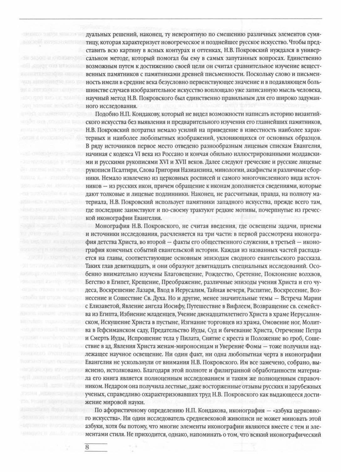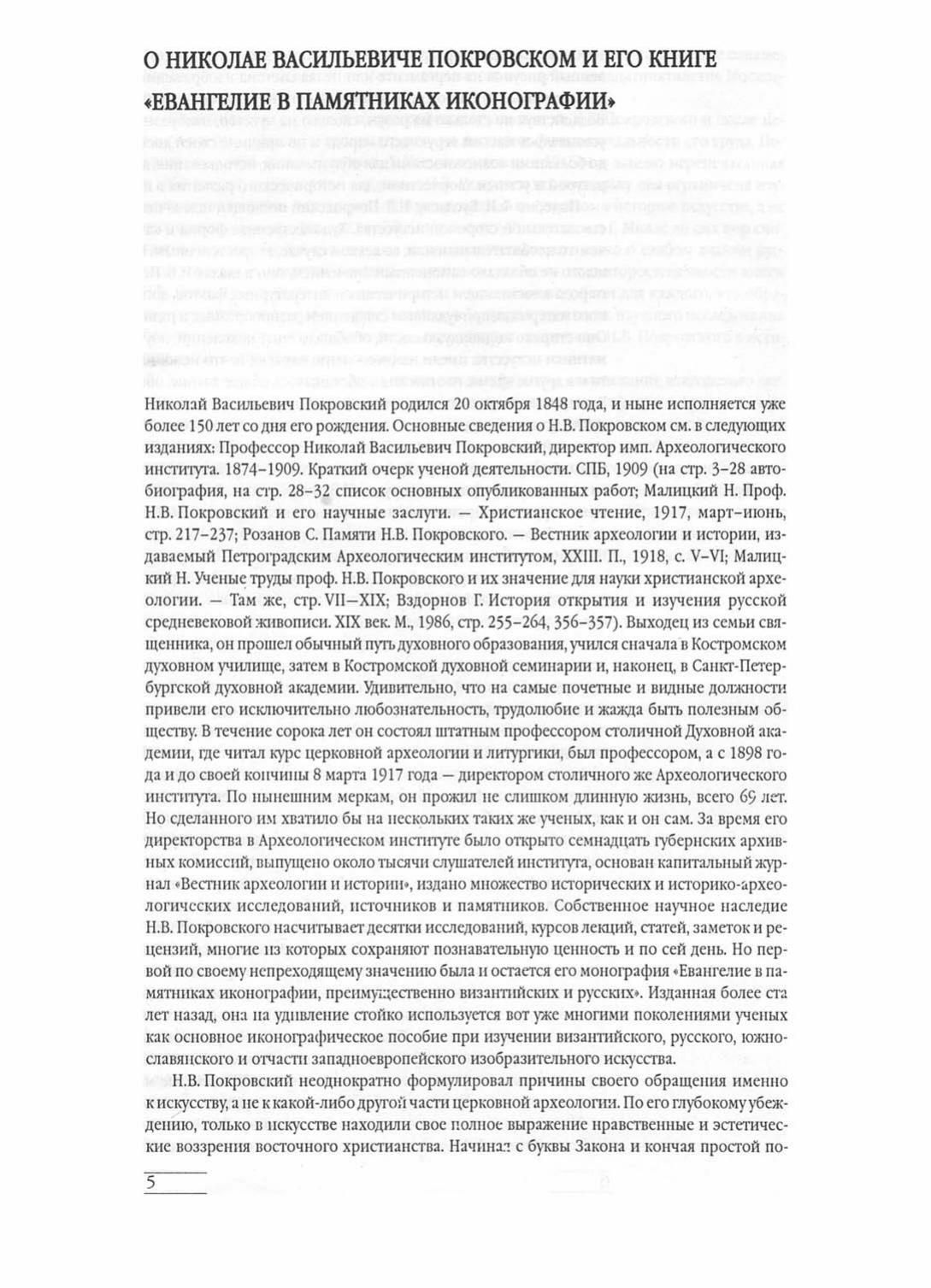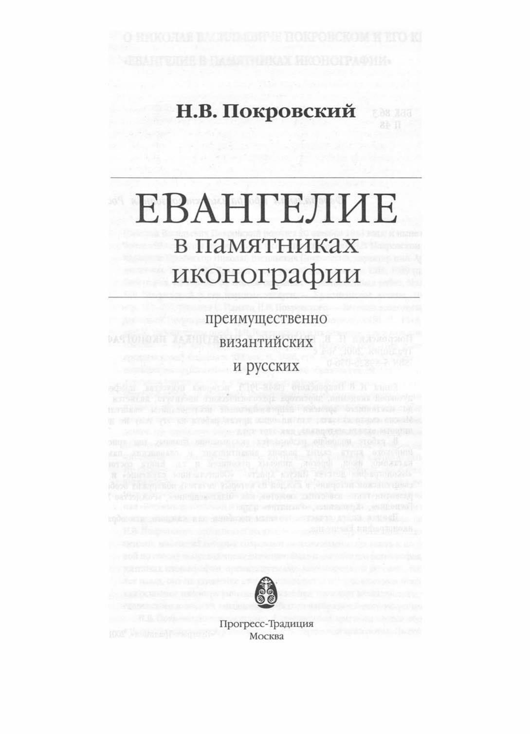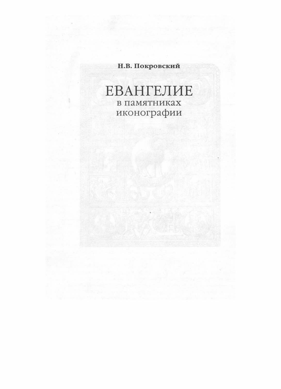Книга Н.В.Покровского (1848-1917), историка искусства, профессора Петербургской духовной академии, директора археологического института, является фундаментальным и до настоящего времени непревзойденным исследованием евангельской иконографии. Можно смело сказать, что ни одна другая работа на эту тему не достигает точности и широты охвата материала, как этот труд.