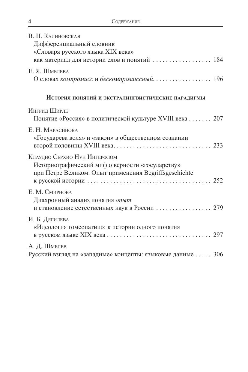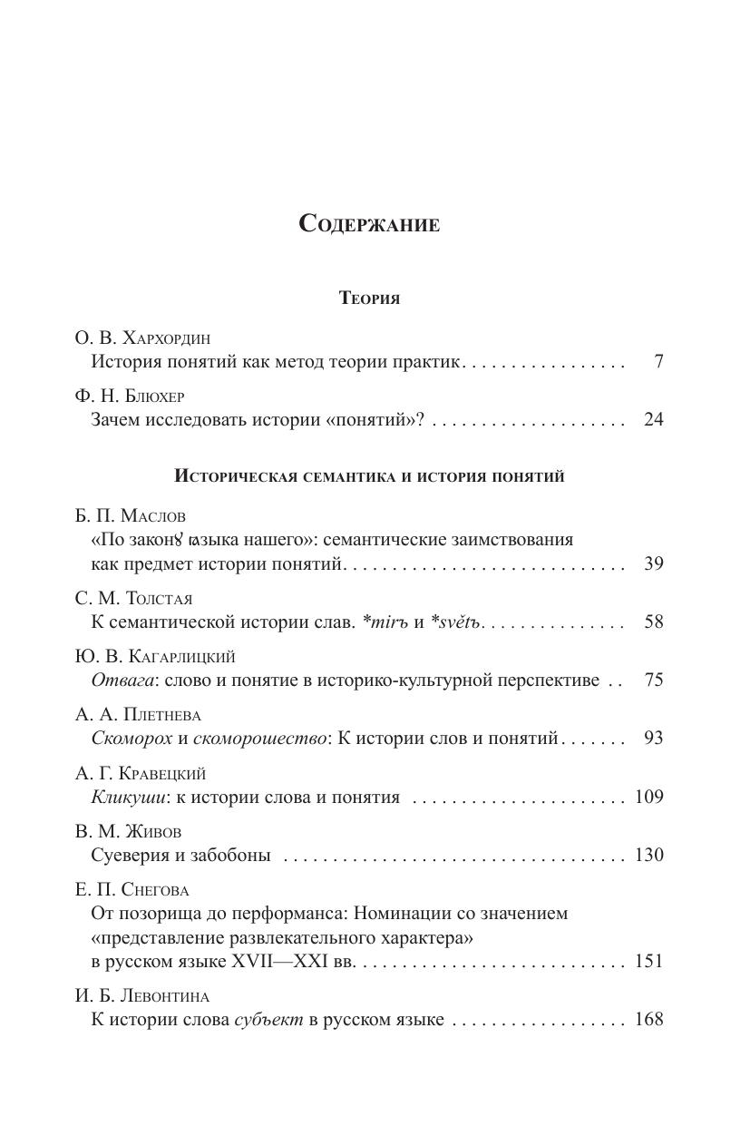 Книга является плодом коллективных усилий исследователей различного профиля – лингвистов, историков, философов. При значительной разнице в методологических подходах авторов объединяет общая цель – дать очерк эволюции различных понятий и связать трансформации понятийного аппарата, смысловые сдвиги с широким контекстом истории русской культуры. Работа авторского коллектива поделена на три тематические части. Первая часть посвящена теоретической рефлексии по поводу истории понятий, делаются попытки определить ее место по отношению к классической философской традиции, к философскому анализу повседневных коммуникативных практик. Во второй части эволюция понятий рассматривается в перспективе исторической семантики, причем подробно исследуется взаимодействие языковых механизмов и культурных процессов, изучается широкий спектр явлений: история отдельных слов и целых концептуальных сфер, виды языковых заимствований и грядущие тенденции в развитии языка. Наконец, в третьей части меняющие свое содержание понятия анализируются на фоне обслуживаемых ими нелингвистических парадигм: политической истории, науки, истории фольклорных форм. Издание представляет интерес для лингвистов, филологов, историков культуры, социологов, политологов, а также для широкого круга читателей, интересующихся историей русского языка и культуры.