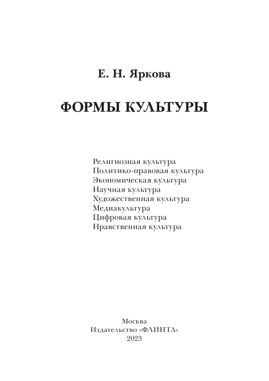 Формы культуры позиционируются как смысловые основания различных сфер бытия человека и общества. Представлены такие традиционно относимые к разным предметным областям формы культуры, как религиозная культура, политико-правовая культура, экономическая культура, научная культура, художественная культура, цифровая культура, медиакультура, нравственная культура. При этом названные формы культуры рассматриваются сквозь призму единой методологии, что позволяет убедиться в их связях, параллелизме их развития. Исследование носит междисциплинарный характер.