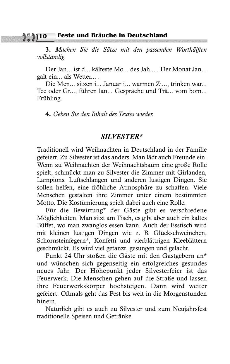 Знакомит с праздниками и обычаями в Германии. Для всех, кто изу чает немецкий язык и интересуется культурными традициями Германии.