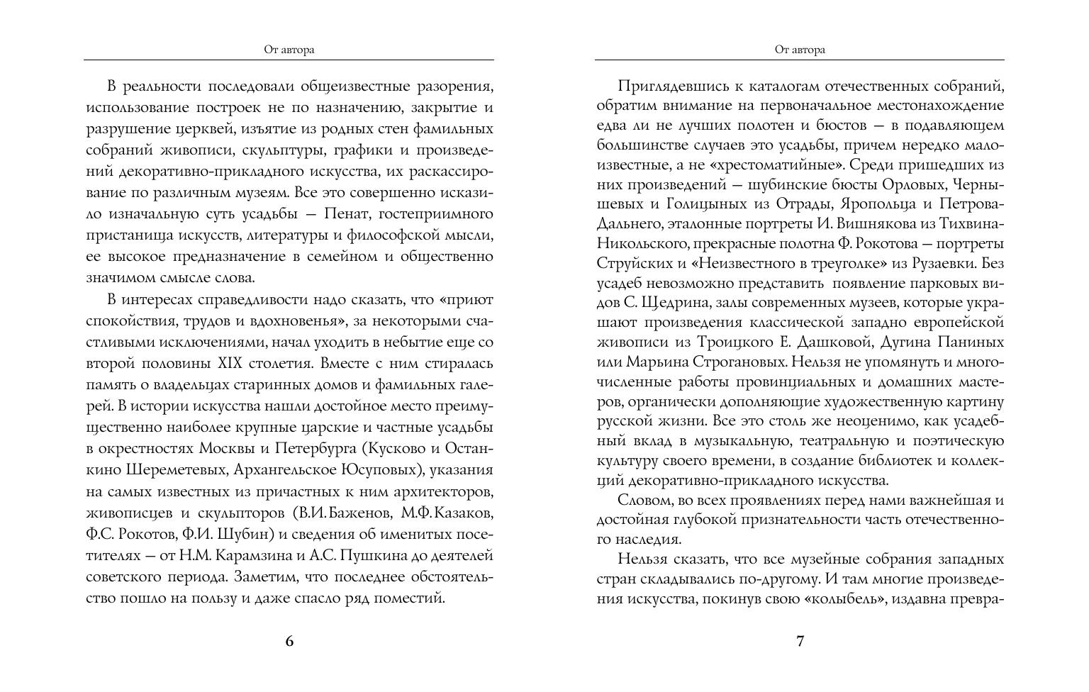 Основываясь на сохранившихся свидетельствах современников, автор стремится дать реальную наиболее типичную картину усадебной русской жизни. Книга содержит очерки о художественной культуре русской усадьбы "золотой" поры второй половины XVIII – начала XIX века и представляет интерес не только для историков и искусствоведов, но и для всех тех, кто воспринимает дворянскую культуру как источник нравственных, просветительских и этических устоев.