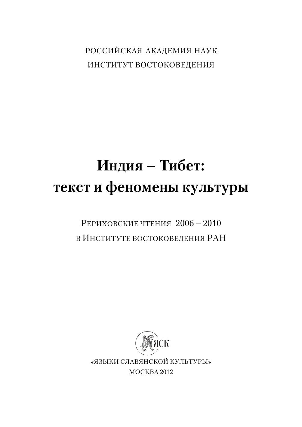 Индия-Тибет: текст и феномены культуры