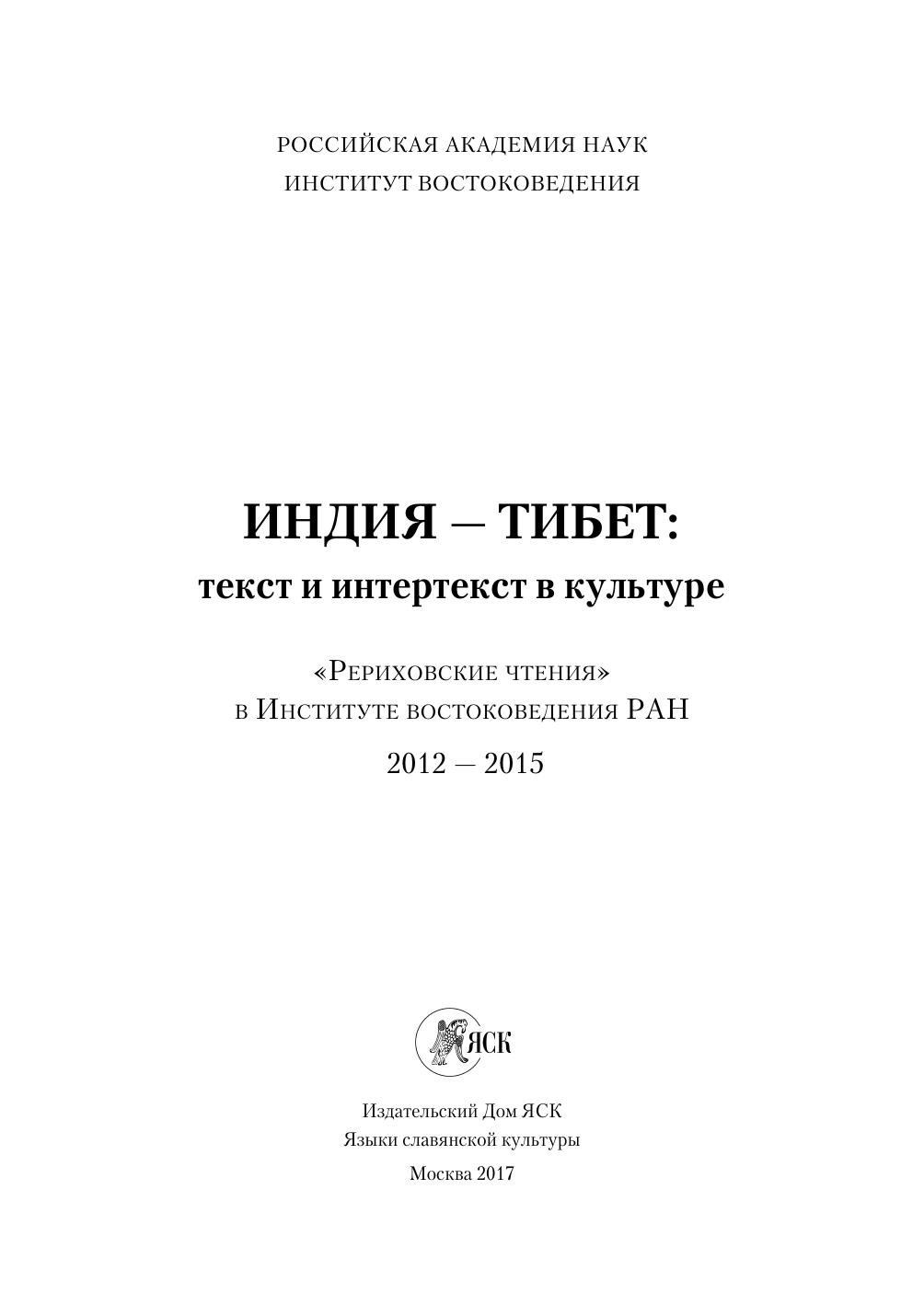 Индия-Тибет: текст и интертекст в культуре: Рериховские чтения 2012-2015 в Институте востоковедения РАН
