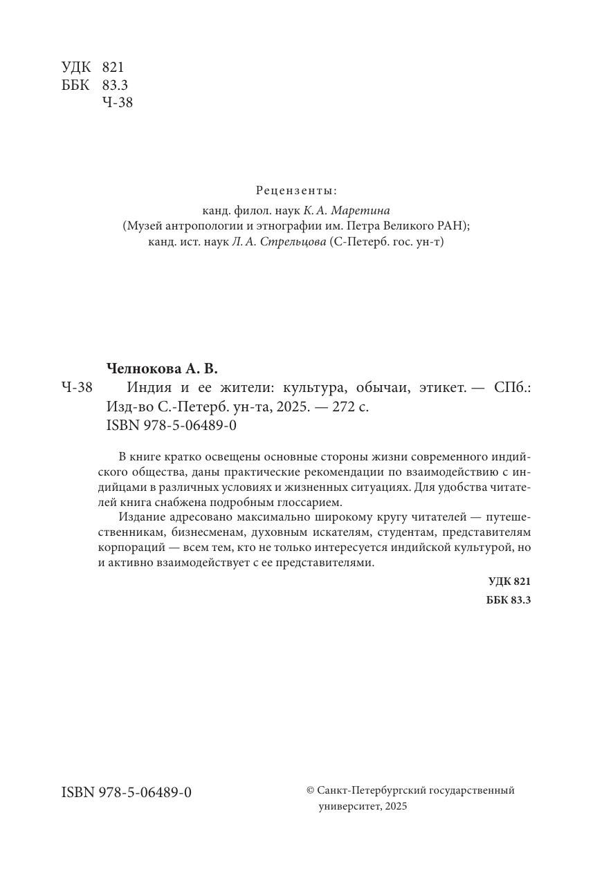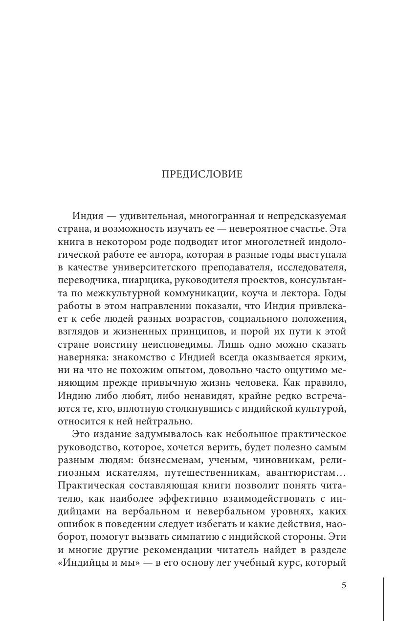 В книге кратко освещены основные стороны жизни современного индийского общества, даны практические рекомендации по взаимодействию с индийцами в различных условиях и жизненных ситуациях. Для удобства читателей книга снабжена подробным глоссарием. Издание адресовано максимально широкому кругу читателей - путешественникам, бизнесменам, духовным искателям, студентам, представителям корпораций - вес тем, кто не только интересуется индийской культурой, но и активно взаимодействует с ее представителями.