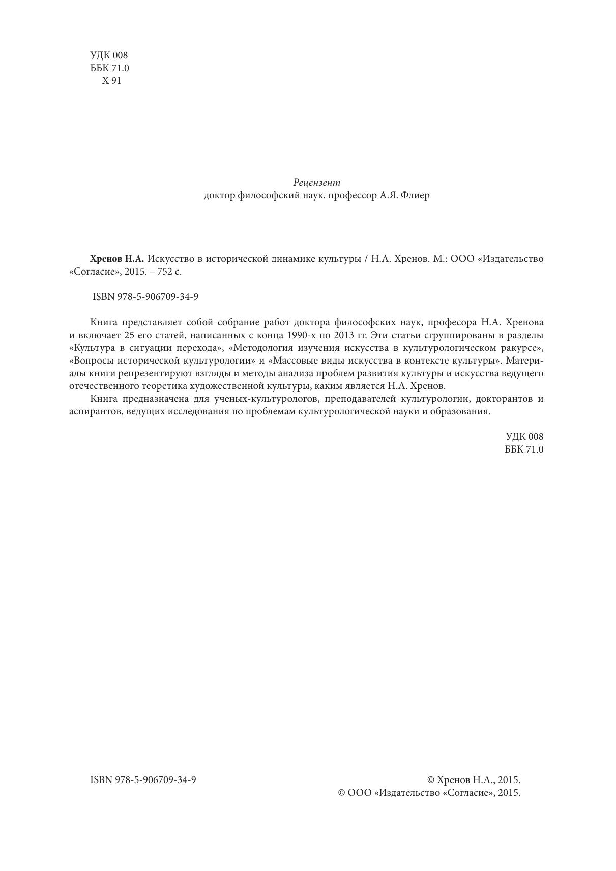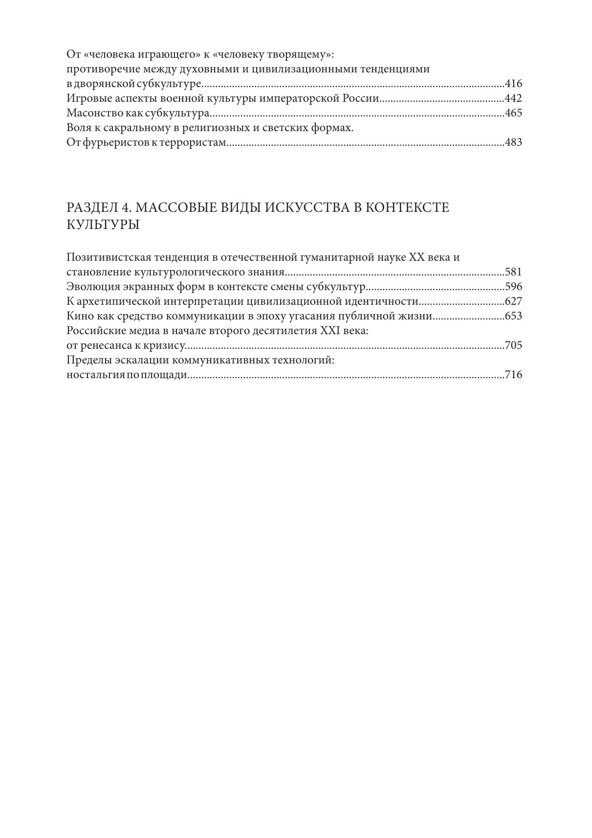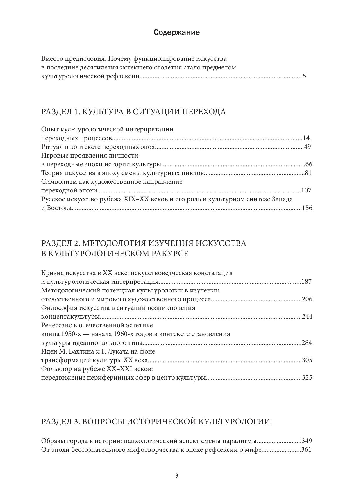 Книга представляет собой собрание работ доктора философских наук, професора Н.А. Хренова и включает 25 его статей, написанных с конца 1990-х по 2013 гг. Эти статьи сгруппированы в разделы «Культура в ситуации перехода», «Методология изучения искусства в культурологическом ракурсе», «Вопросы исторической культурологии» и «Массовые виды искусства в контексте культуры». Материалы книги репрезентируют взгляды и методы анализа проблем развития культуры и искусства ведущего отечественного теоретика художественной культуры, каким является Н.А. Хренов.